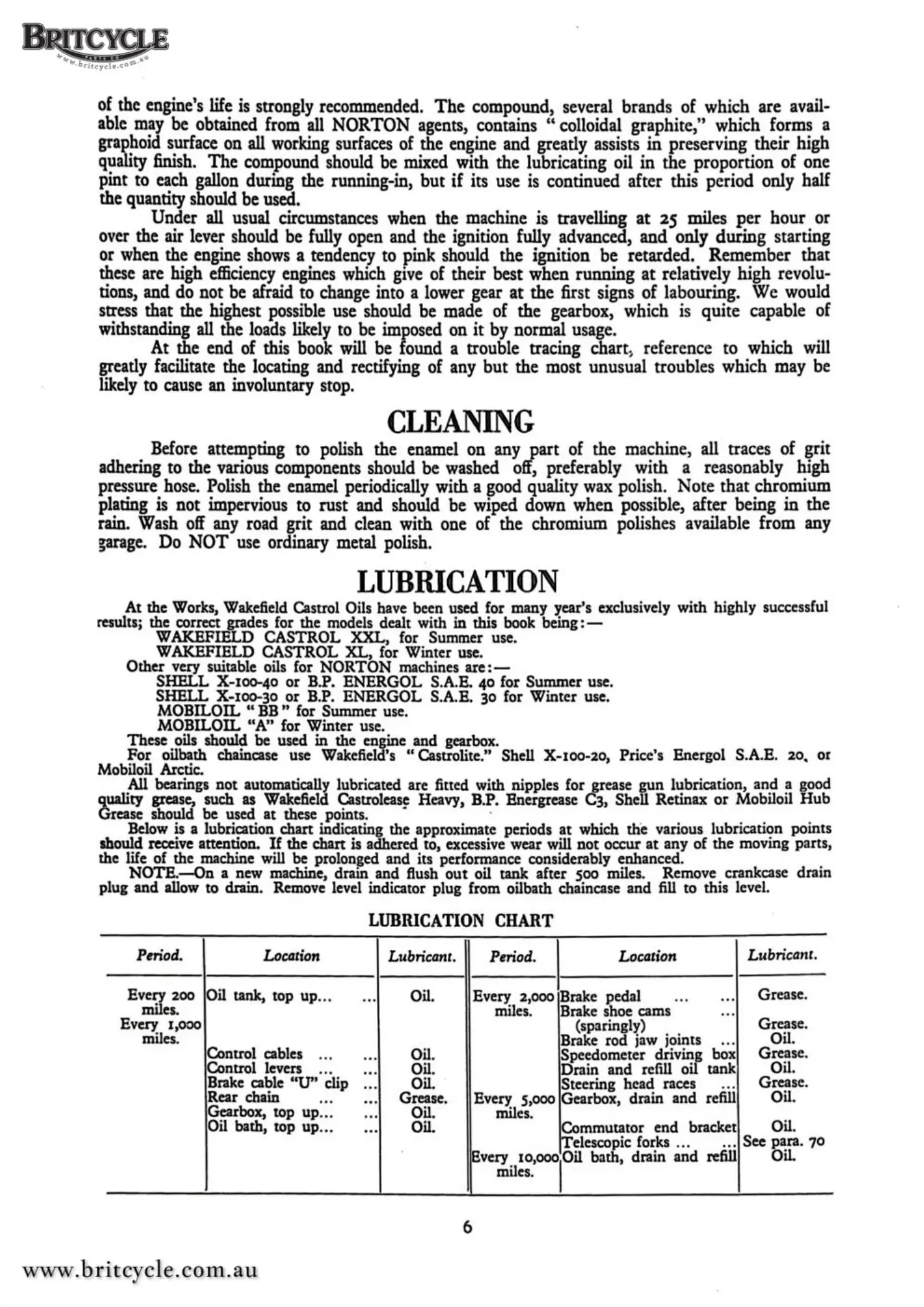 oilbath cbaincase use Wakefield's "Castrolite ." Shell X-100-20, Price's Bnergol S.A.E. 20,