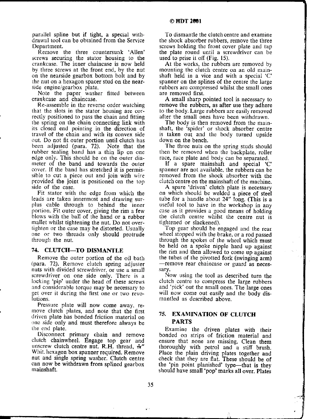 Norton 50 - Clutch - to Dismantle; Examination of Clutch Parts