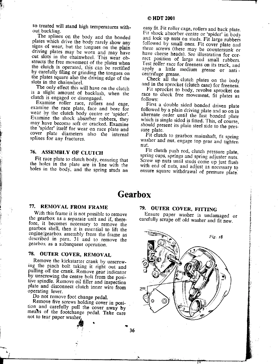 Norton 50 - Gearbox; Removal of Clutch from Frame; Outer Cover Removal and Fitting; Assembly of Clutch
