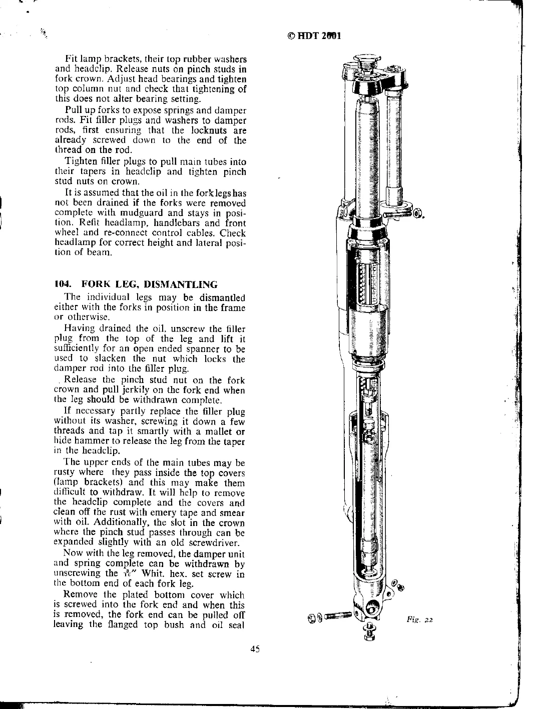 Norton 50 - Fork Leg, Dismantling