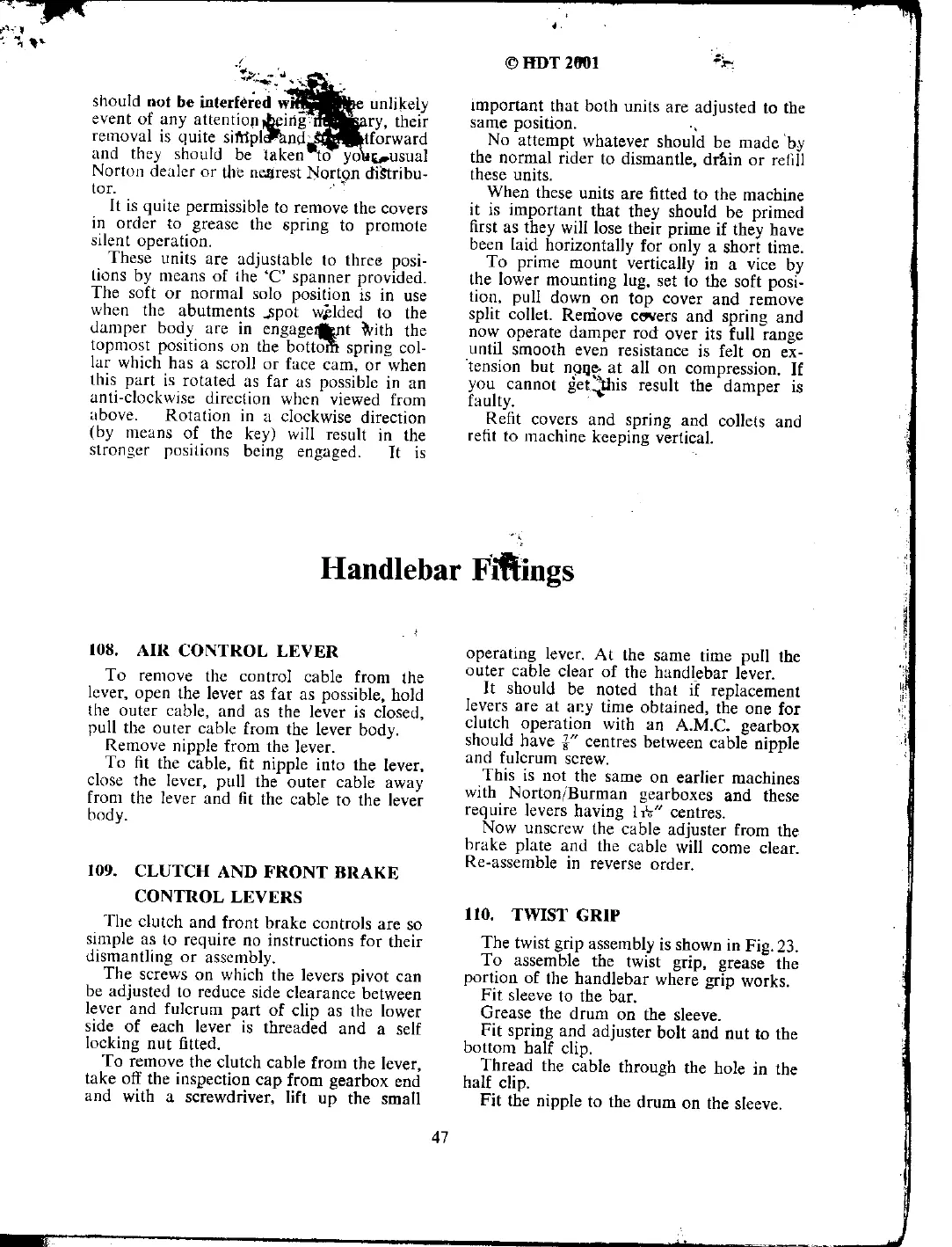 Norton 50 - Handlebar Fittings; Air Control Lever; Clutch and Front Brake Control Levers; Twist Grip