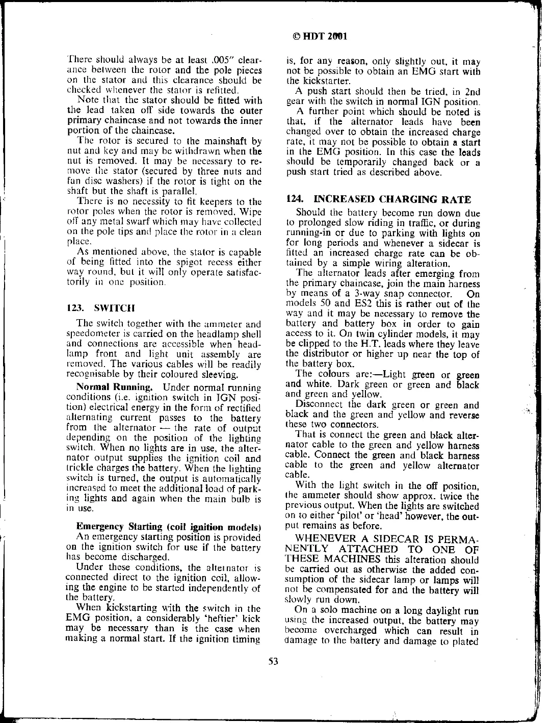 Norton 50 - Switch; Normal Running; Emergency Starting (Coil Ignition Models); Increased Charging Rate