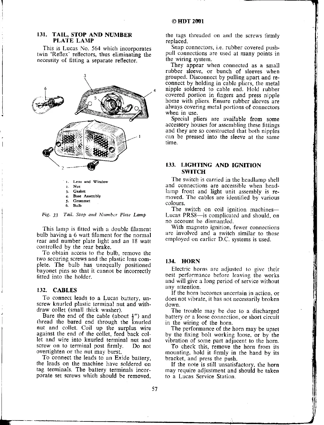 Norton 50 - Tail, Stop and Number Plate Lamp; Cables; Lighting and Ignition Switch; Horn