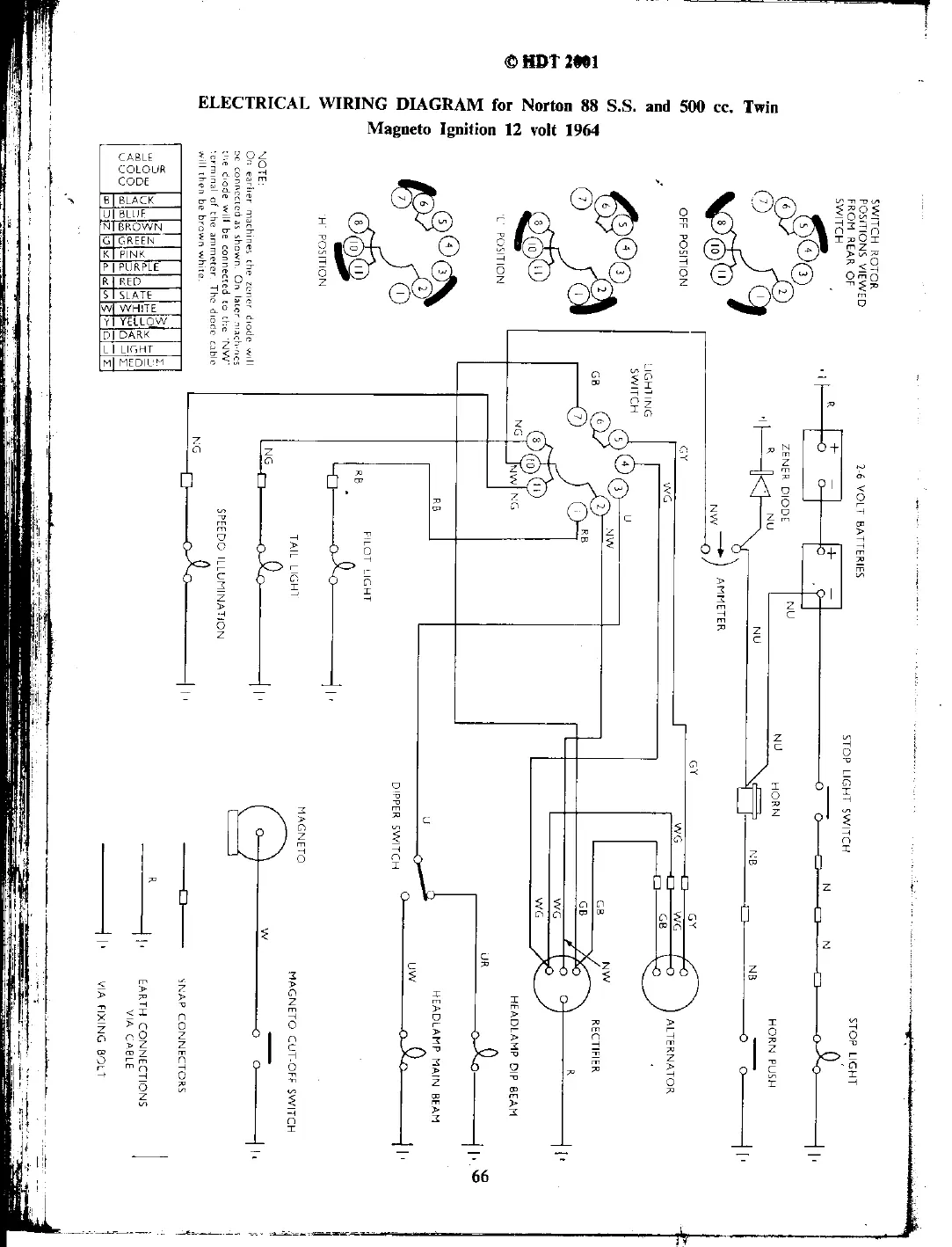 Norton 50 - Electrical Wiring Diagram for Norton 88 S.S. and 500 CC. Twin Magneto Ignition 12 Volt 1964