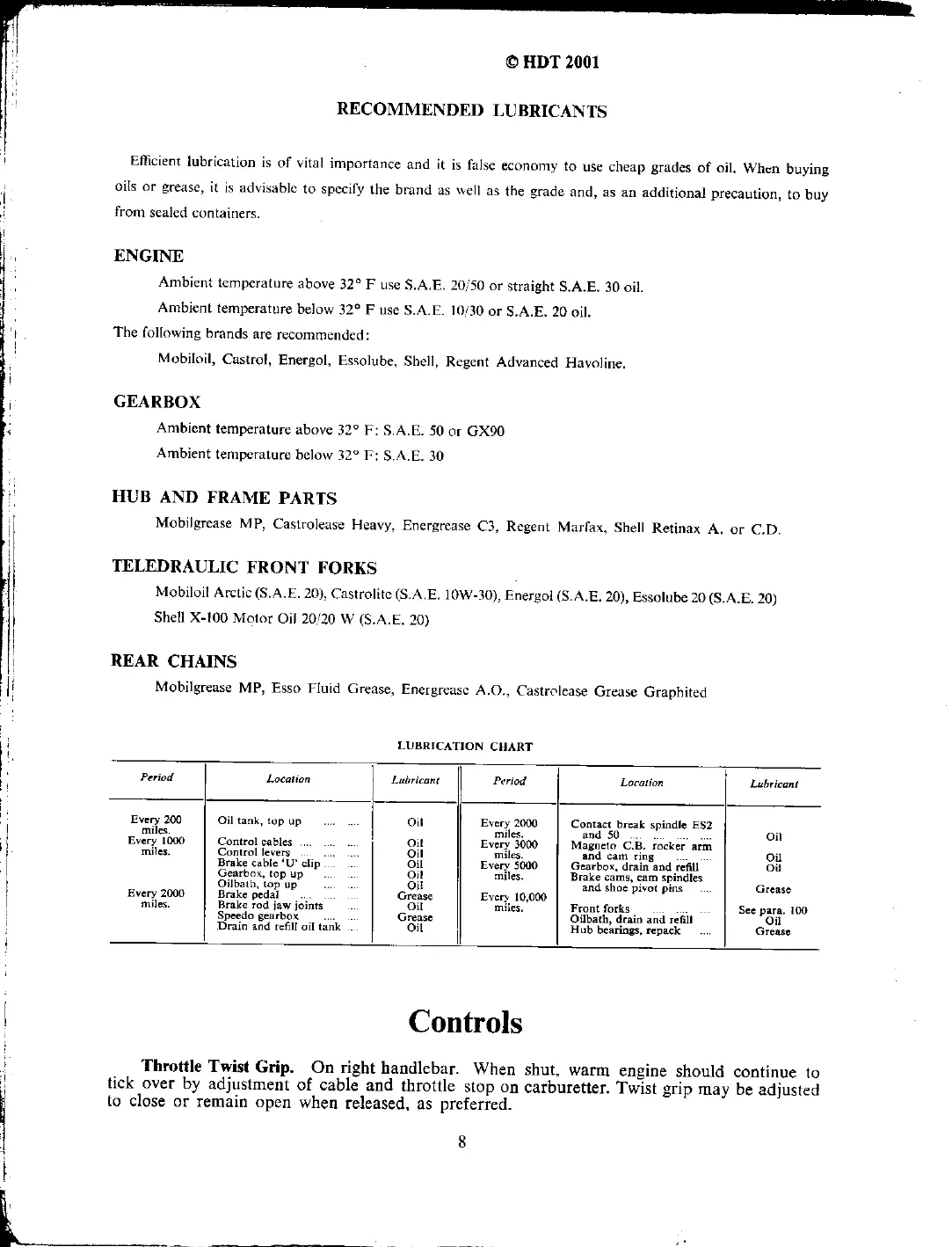Norton 50 - Recommended Lubricants; Lubrication Chart