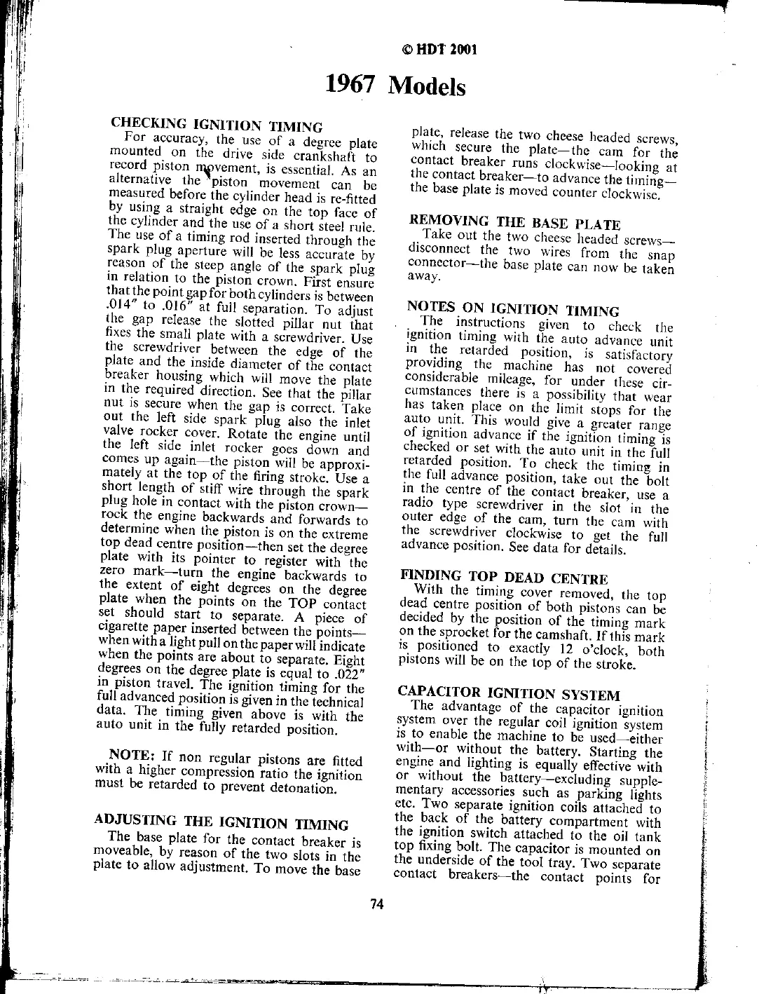 Norton 50 - 1967 Models Specifics; Ignition Timing and Capacitor System