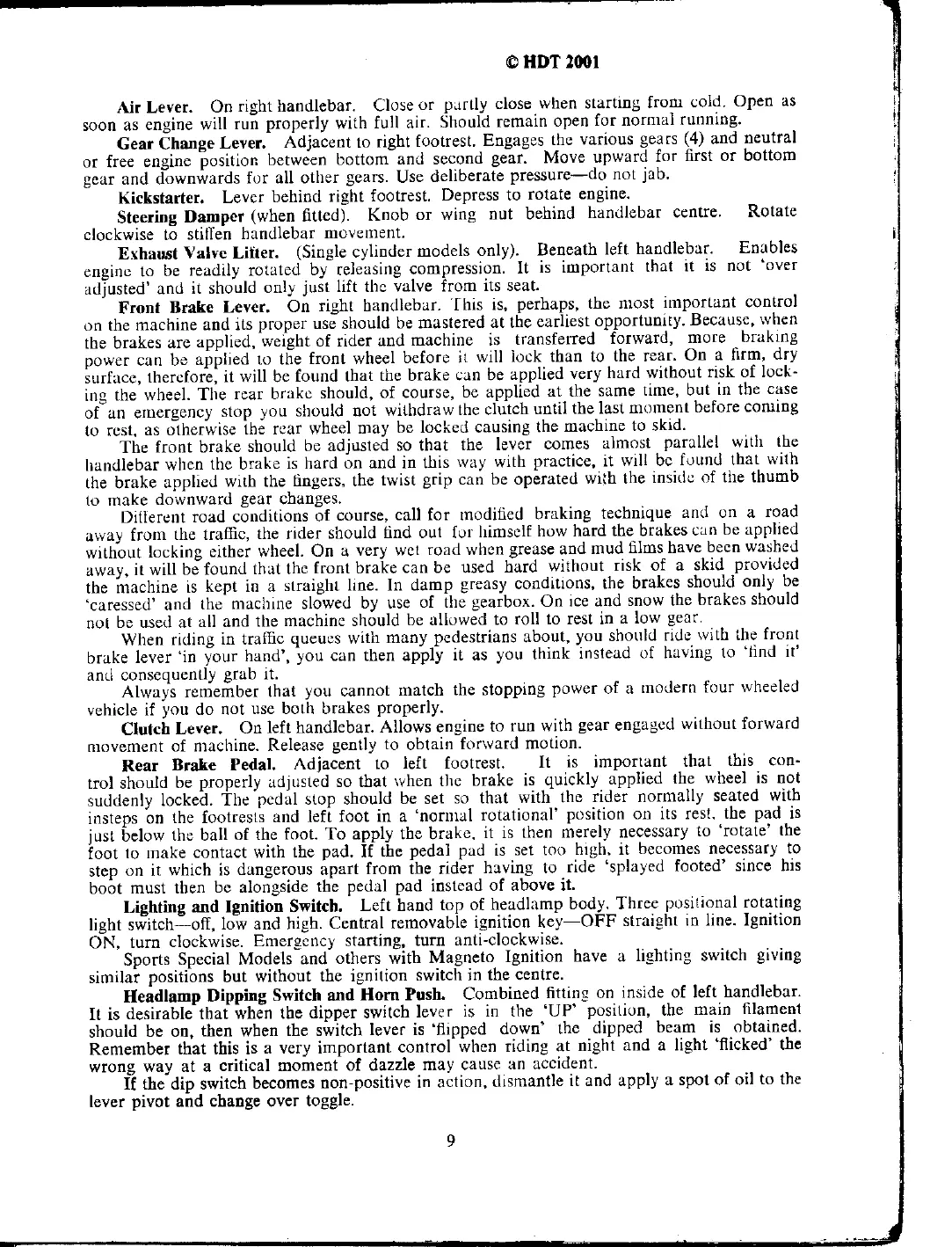 Norton 50 - Machine Controls; Brake and Clutch Levers; Lighting and Ignition Switch