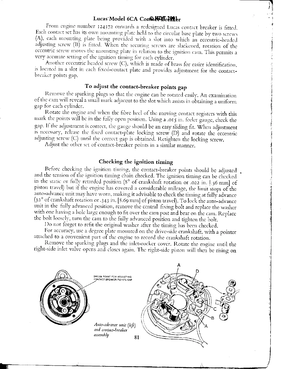 Norton 50 - Lucas Contact Breaker Details; Adjusting Contact Breaker Points Gap; Checking Ignition Timing