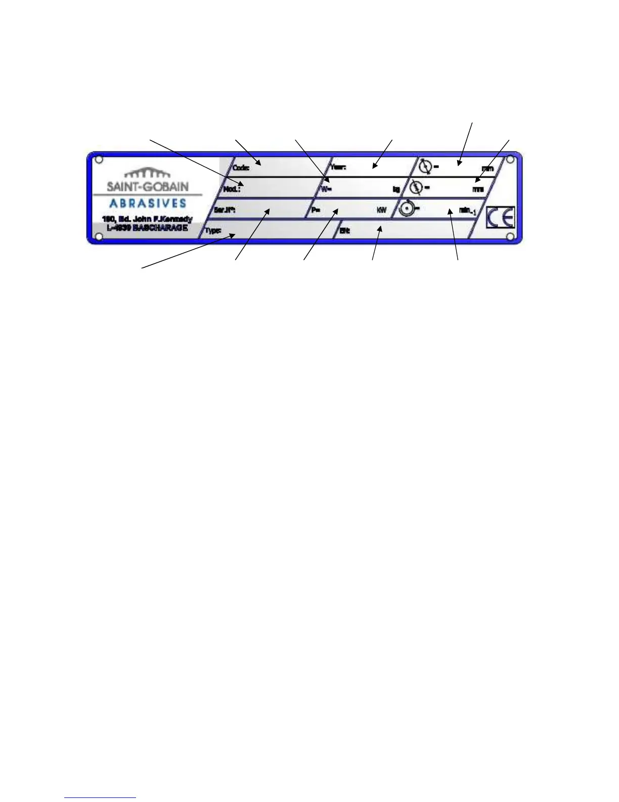 Important data can be found on the following plate located on the machine: