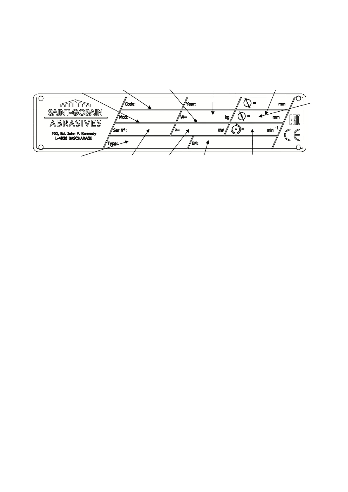 Important data can be found on the following plate located on the machine: