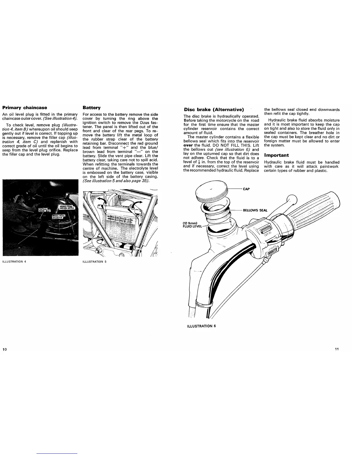 Norton Commando 750 - Taking Over a New Motorcycle; Fluid Level Checks; Battery Service; Hydraulic Fluid Handling