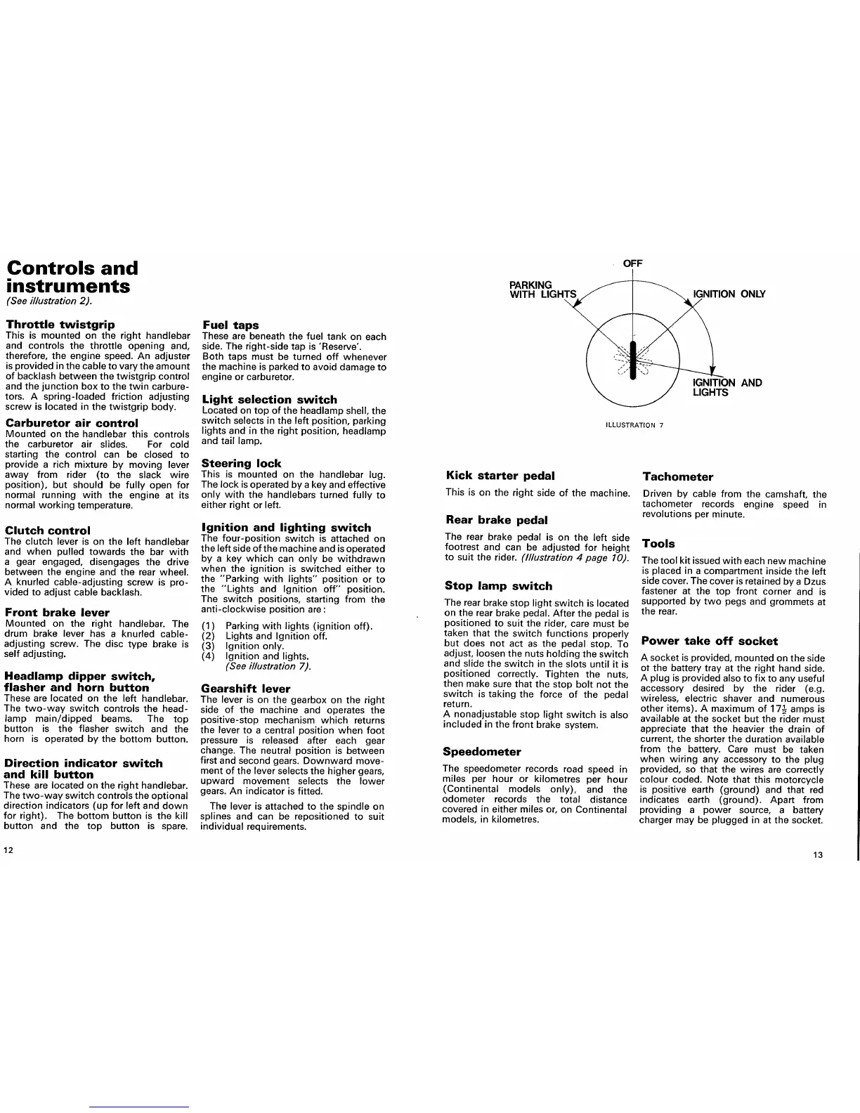Norton Commando 750 - Foot Controls; Dashboard Instruments and Switches; Other Controls and Features