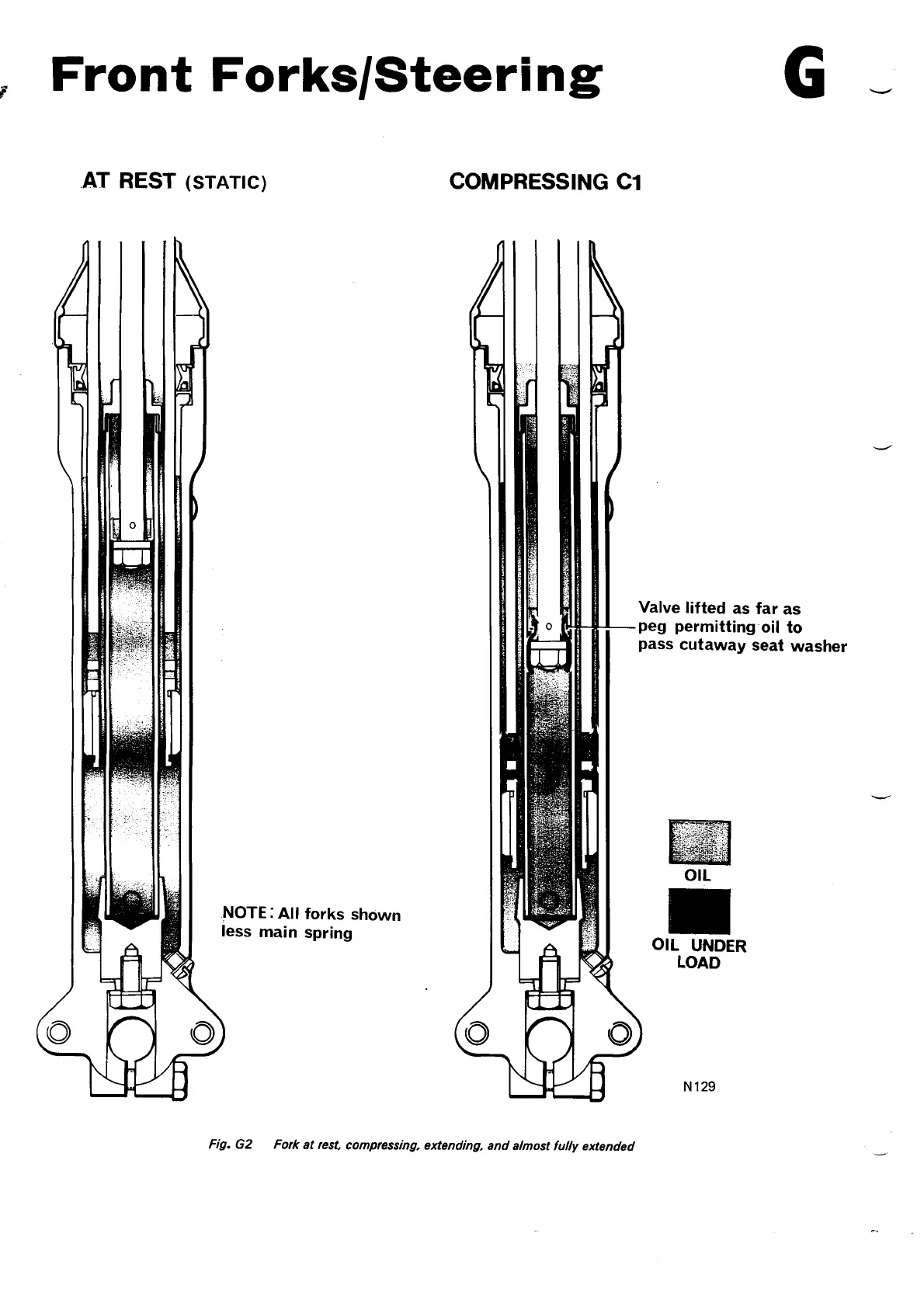 Norton Commando 850 - Fork at Rest, Compressing, Extending and Almost Fully Extended