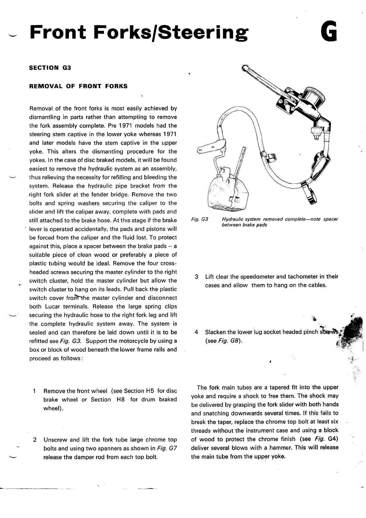 Norton Commando 850 - Removal of Front Forks; Hydraulic System Removed Complete