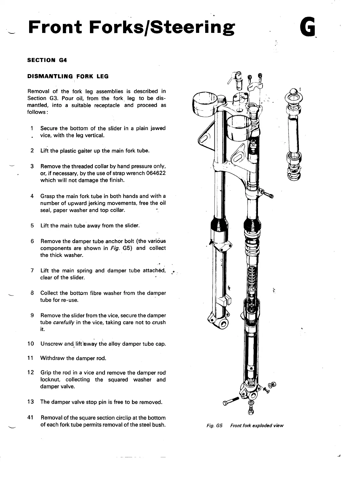 Norton Commando 850 - Dismantling Fork Leg; Front Fork Exploded View