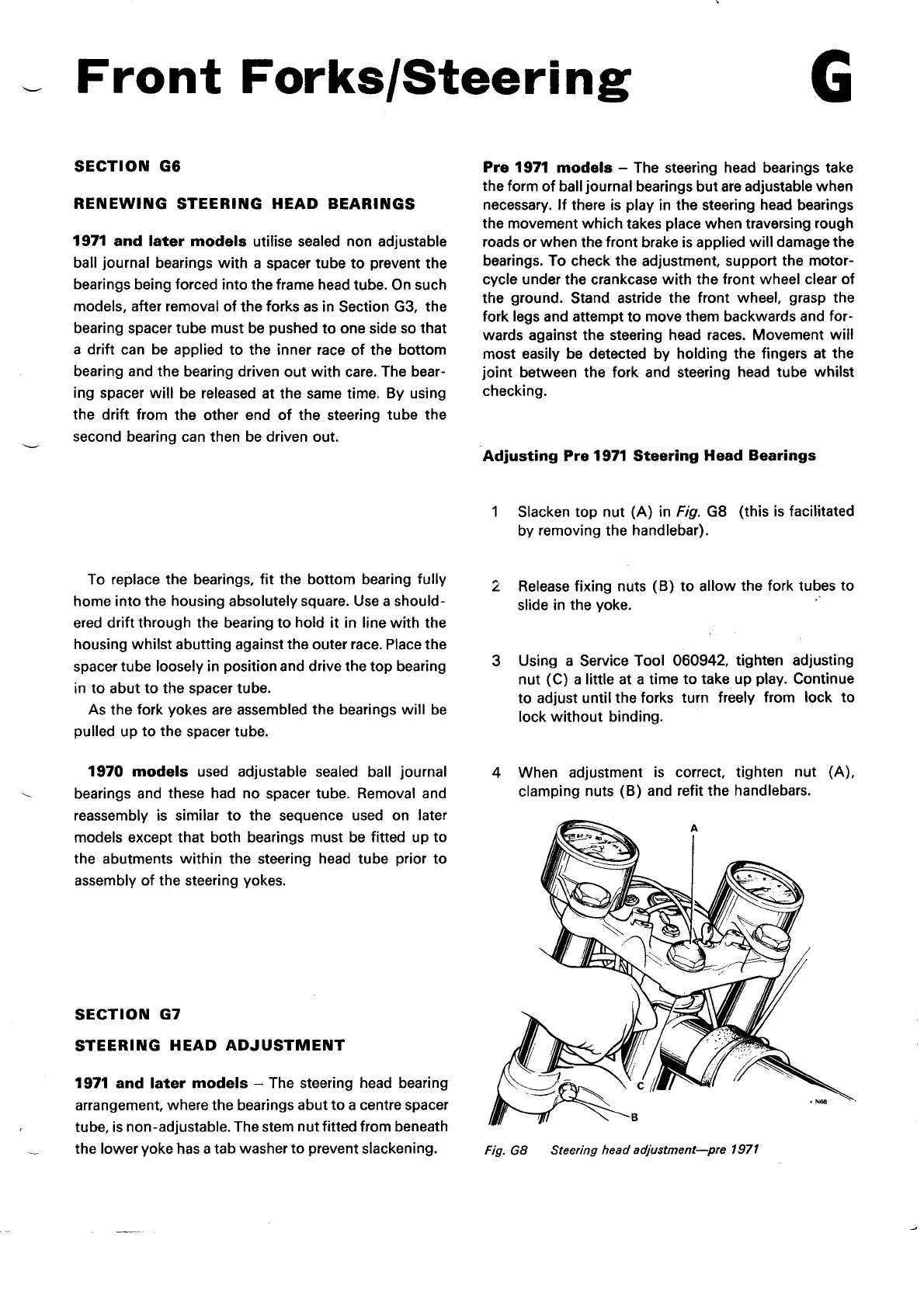 Norton Commando 850 - Renewing Steering Head Bearings; Steering Head Adjustment