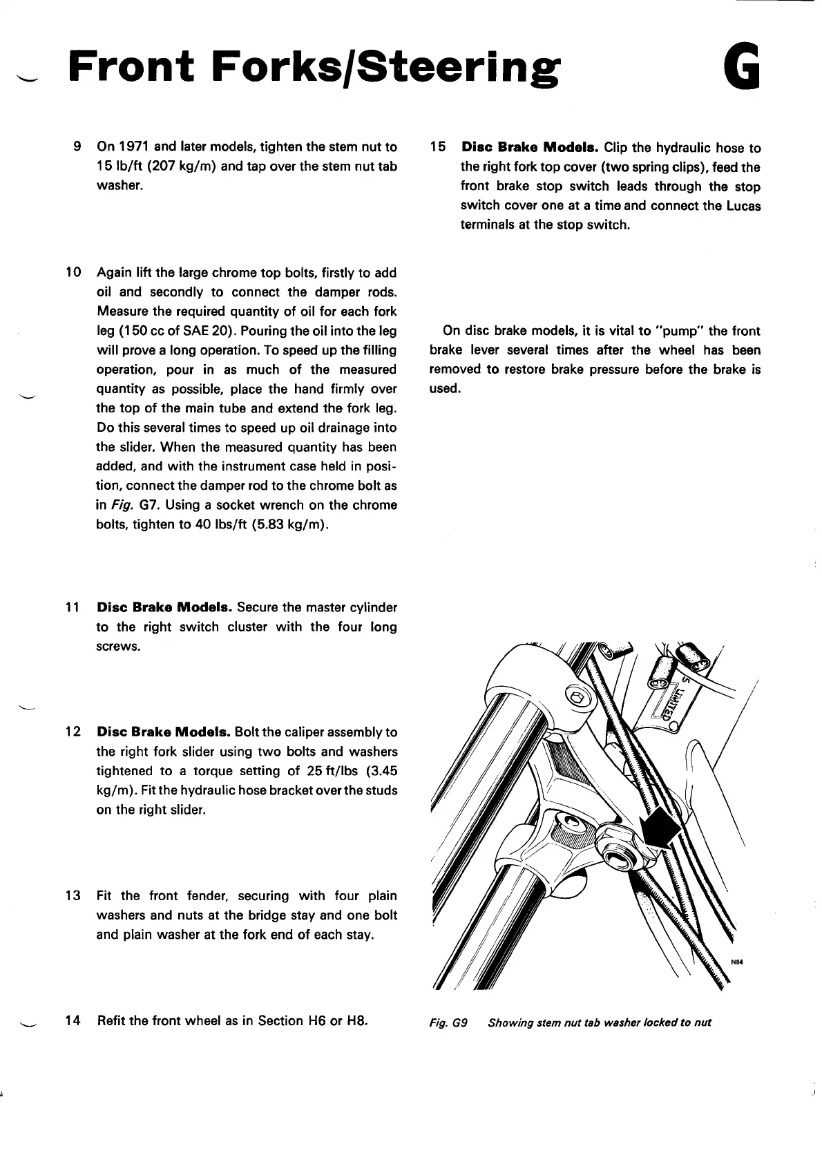Norton Commando 850 - Showing Stem Nut Tab Washer Locked to Nut