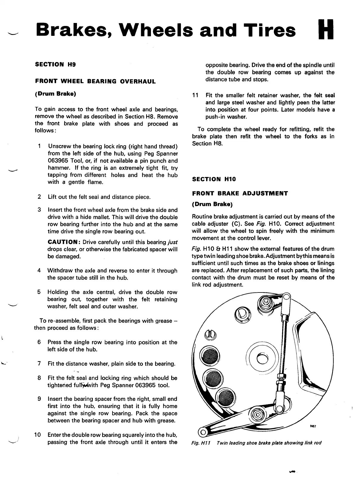 Norton Commando 850 - Front Wheel Bearing Overhaul (Drum Brake); Front Brake Adjustment (Drum Brake); Twin Leading Shoe Brake Plate Showing Link Rod