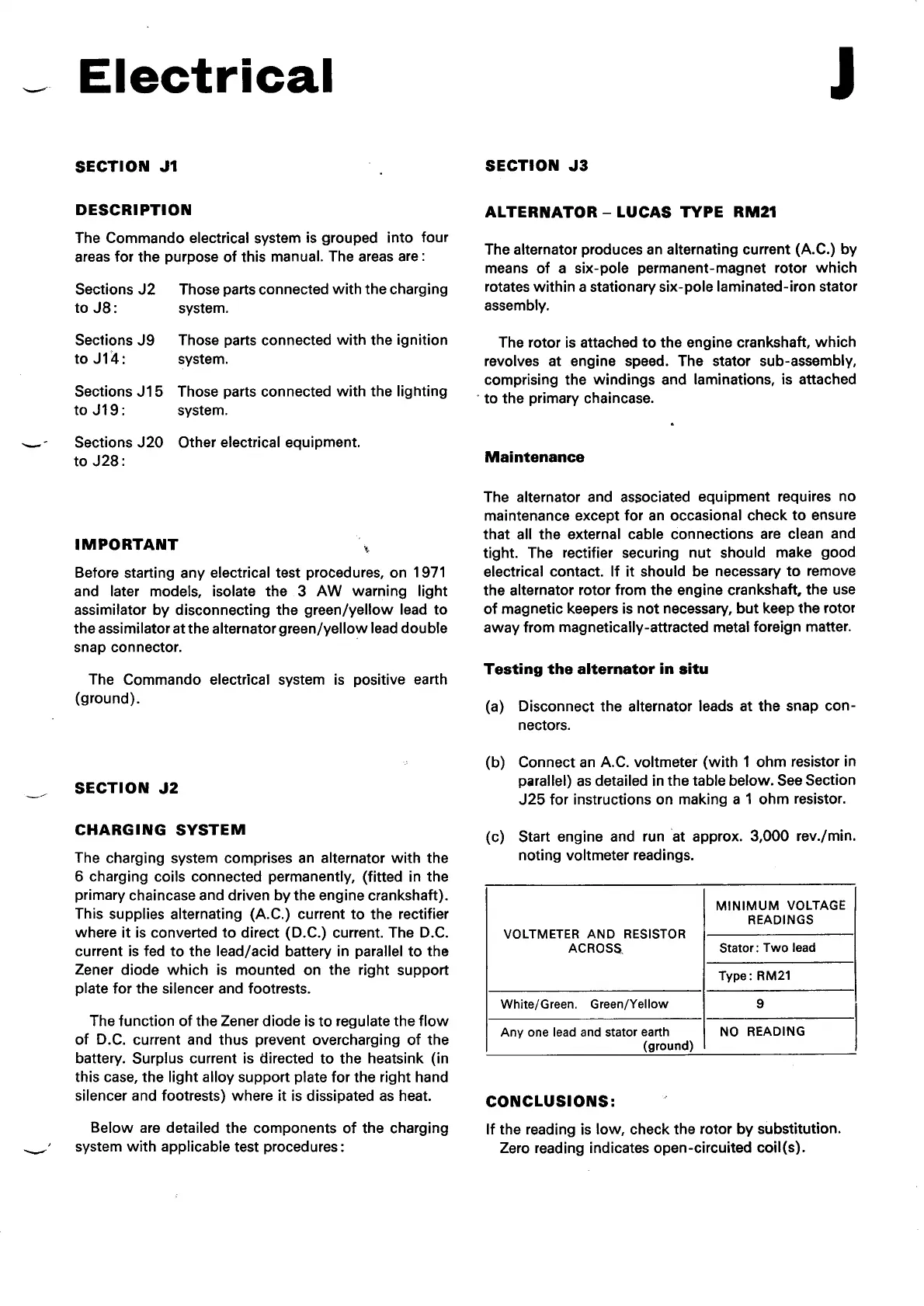 Norton Commando 850 - Charging System; Alternator - Lucas Type RM21; Alternator Maintenance; Testing the Alternator in Situ