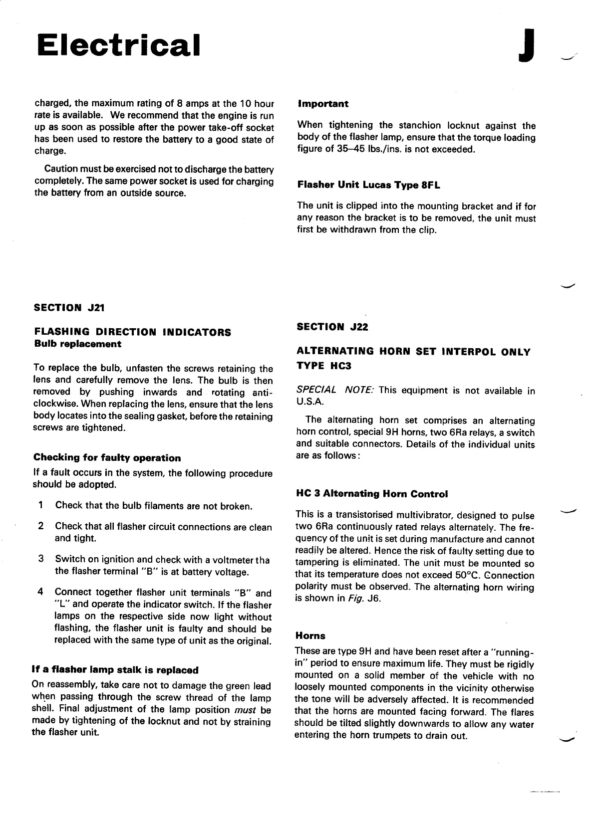 Norton Commando 850 - Flashing Direction Indicators; Alternator Horn Set Interpol Only Type HC3; Bulb Replacement, Checking for Faulty Operation; HC 3 Alternating Horn Control
