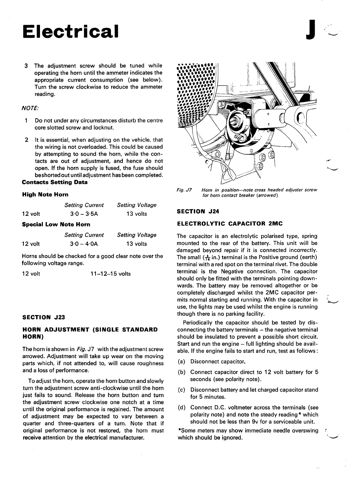 Norton Commando 850 - Electrolytic Capacitor 2 MC; Horn Adjustment (Single Standard Horn); Horn in Position