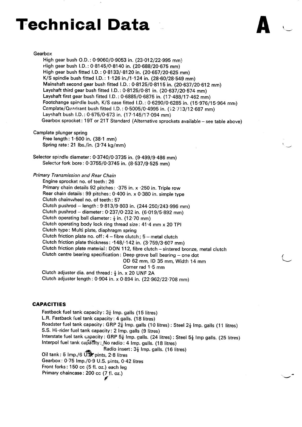Norton Commando 850 - Technical Data: Capacities