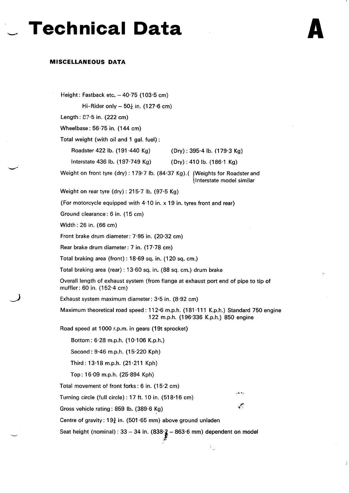 Norton Commando 850 - Technical Data: Miscellaneous Data