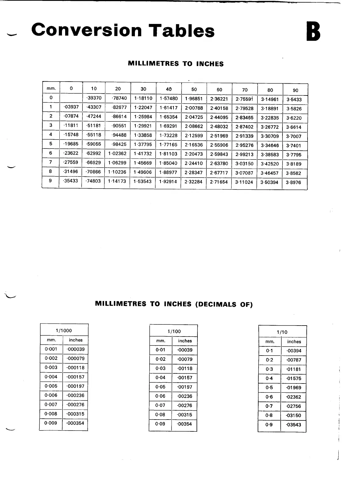 Norton Commando 850 - Millimeters to Inches Conversion Table