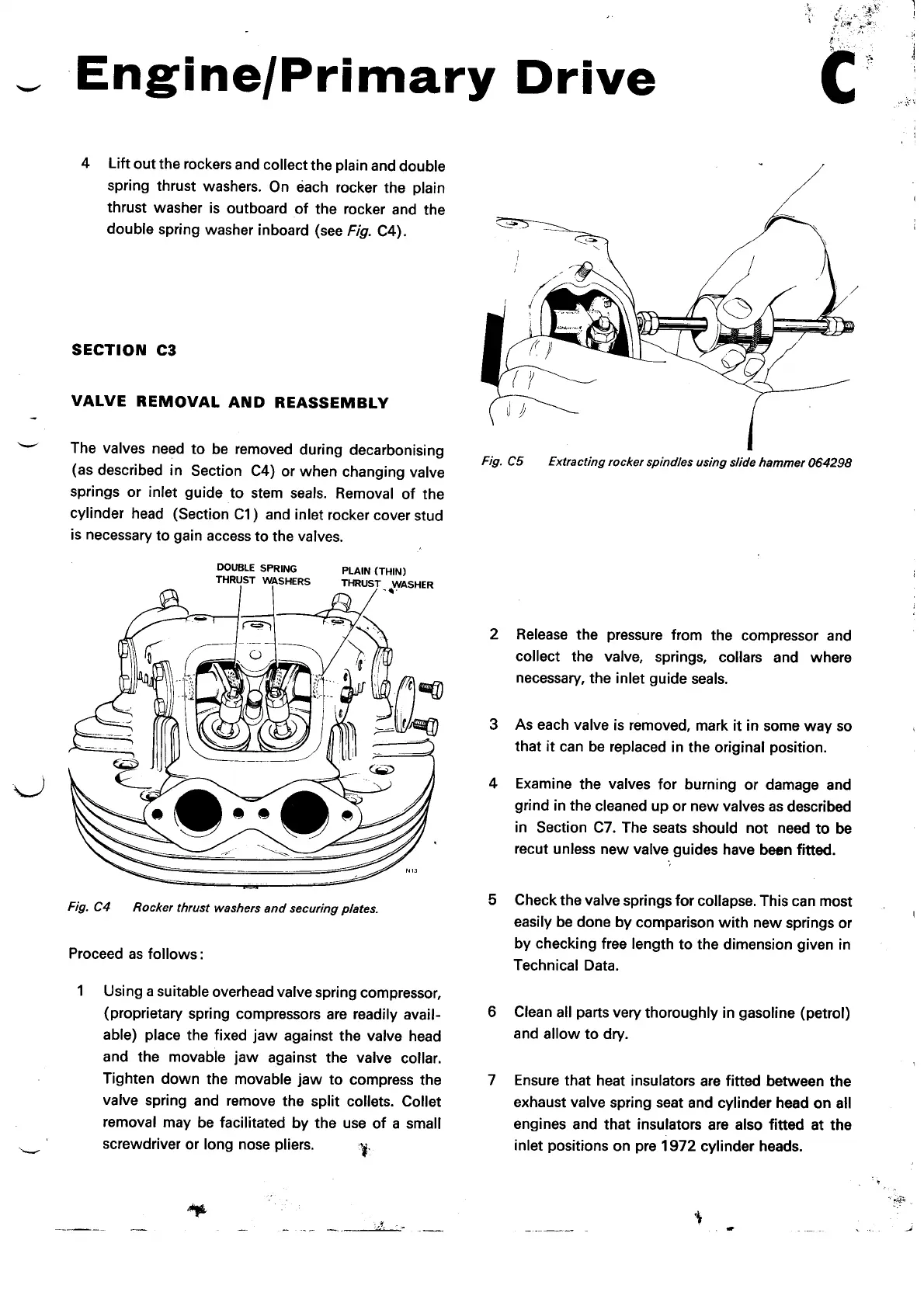 Norton Commando 850 - Valve Removal and Reassembly; Rocker Thrust Washers and Securing Plates; Extracting Rocker Spindles Using Slide Hammer 064298