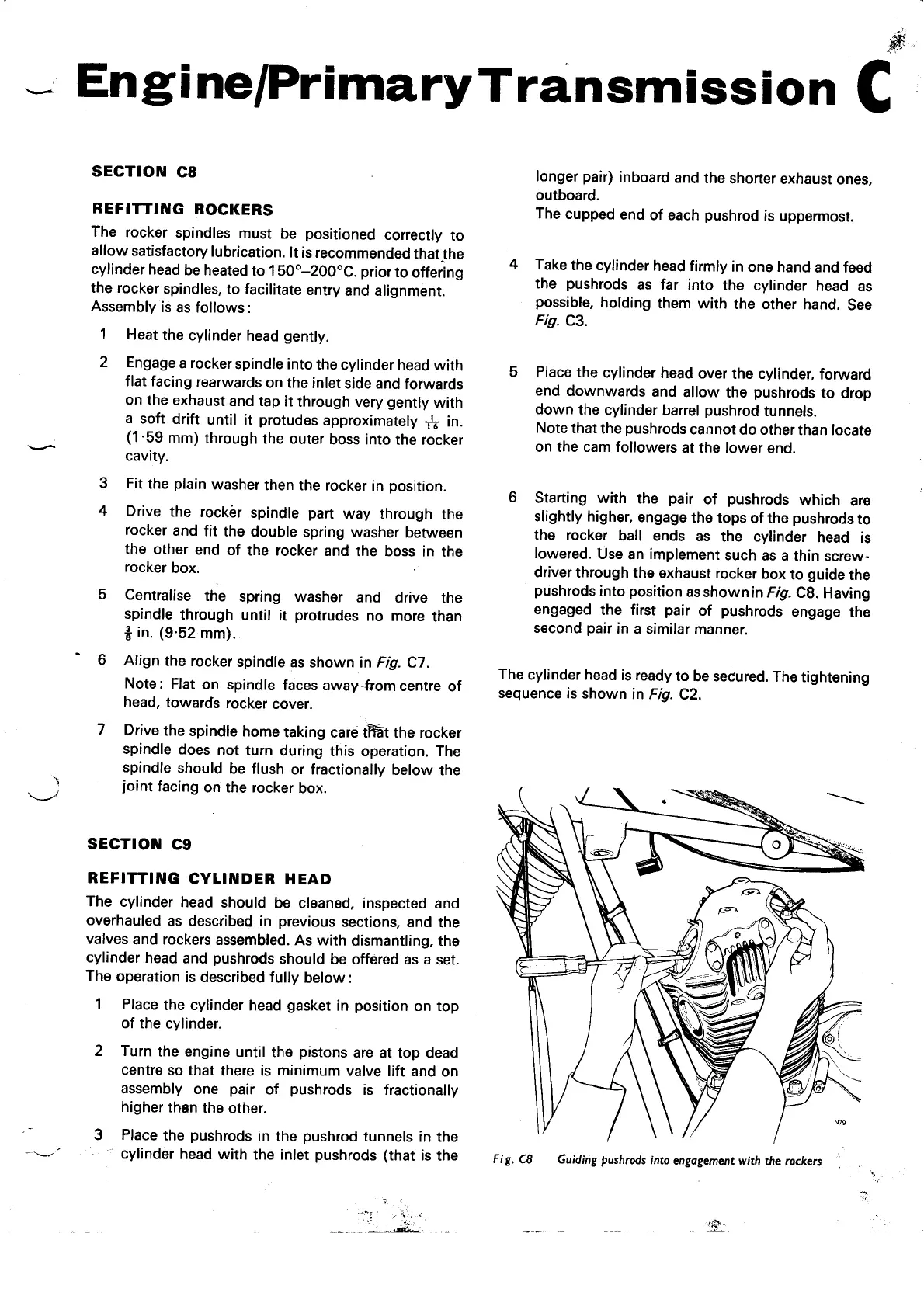 Norton Commando 850 - Refitting Rockers; Refitting Cylinder Head; Guiding Pushrods into Engagement with the Rockers