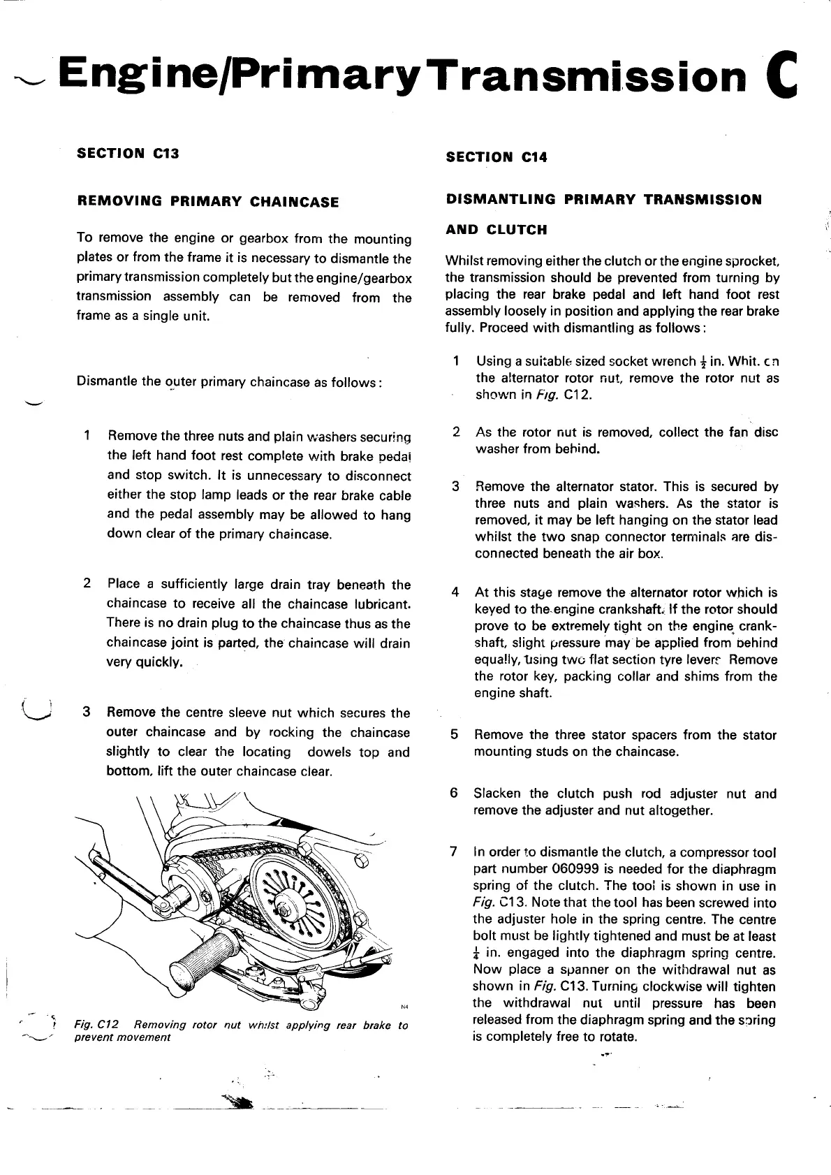 Norton Commando 850 - Removing Primary Chaincase; Dismantling Primary Transmission and Clutch; Removing Rotor Nut Whilist Applying Rear Brake to Prevent Movement
