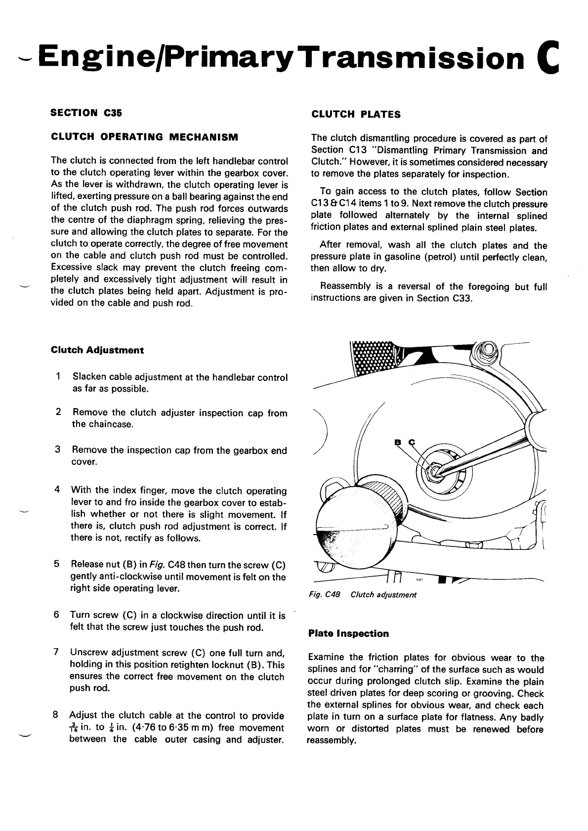 Norton Commando 850 - Clutch Operating Mechanism; Clutch Plates; Clutch Adjustment; Plate Inspection
