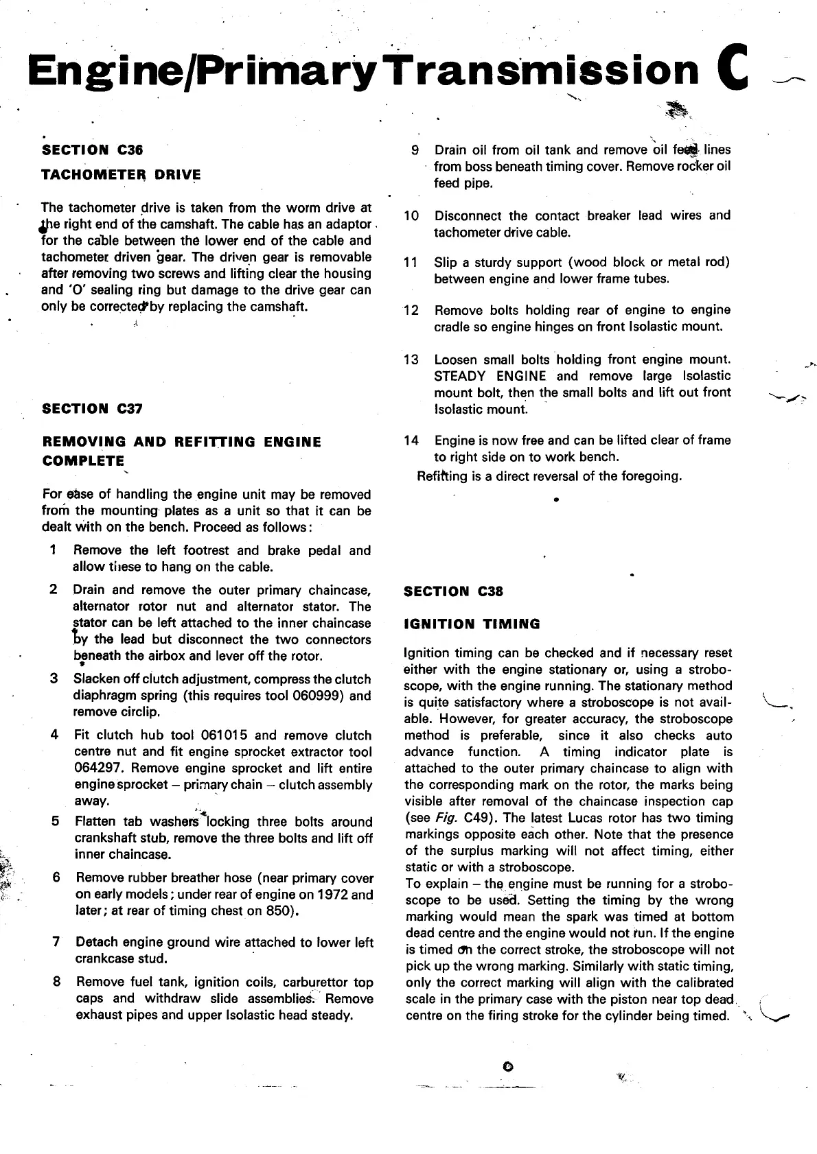 Norton Commando 850 - Tachometer Drive; Removing and Refitting Engine Complete; Ignition Timing
