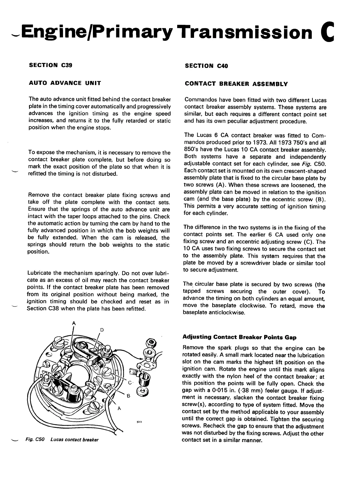 Norton Commando 850 - Auto Advance Unit; Contact Breaker Assembly; Adjusting Contact Breaker Points Gap; C50 Lucas Contact Breaker