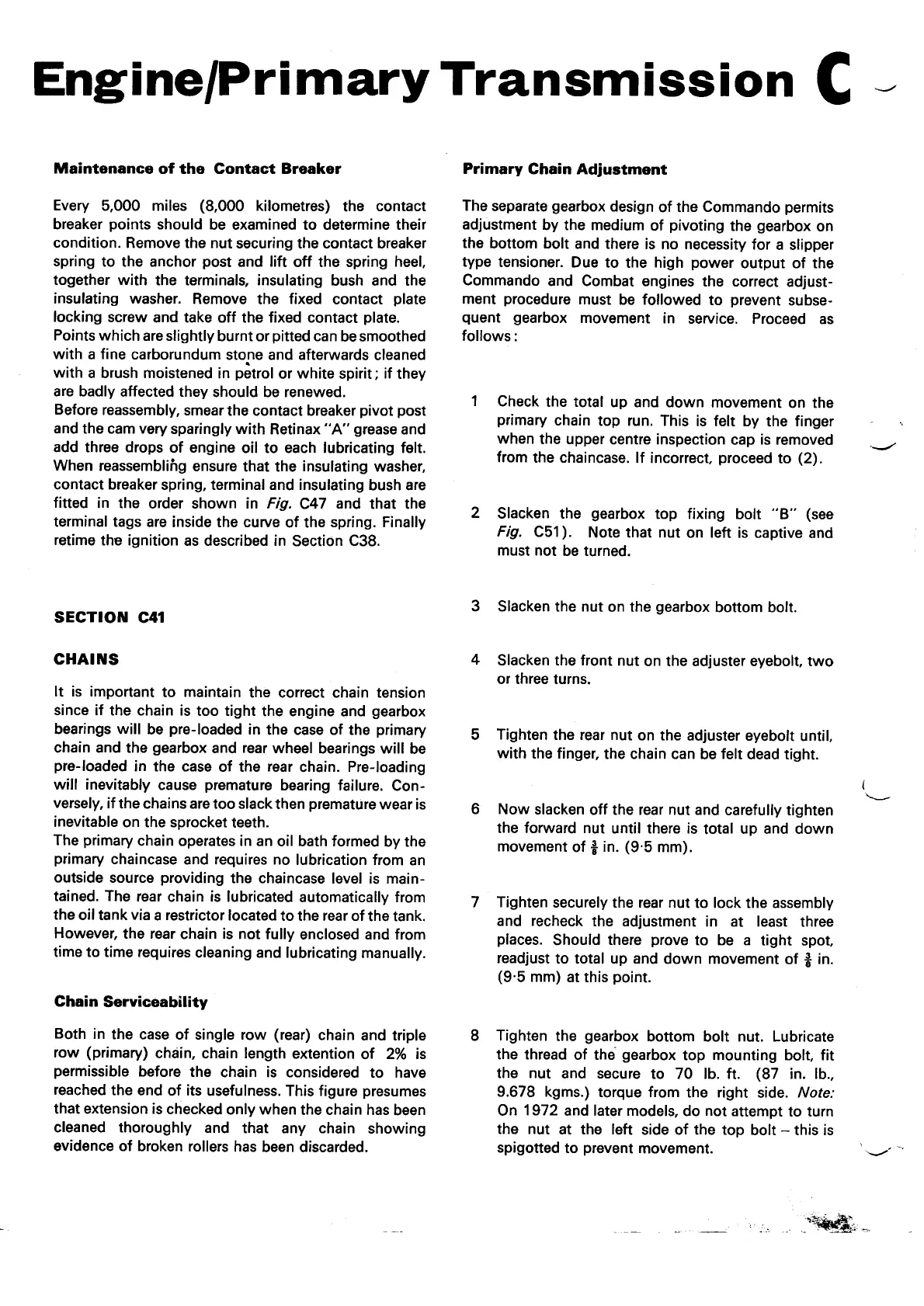 Norton Commando 850 - Maintenance of the Contact Breaker; Primary Chain Adjustment; Chain Serviceability