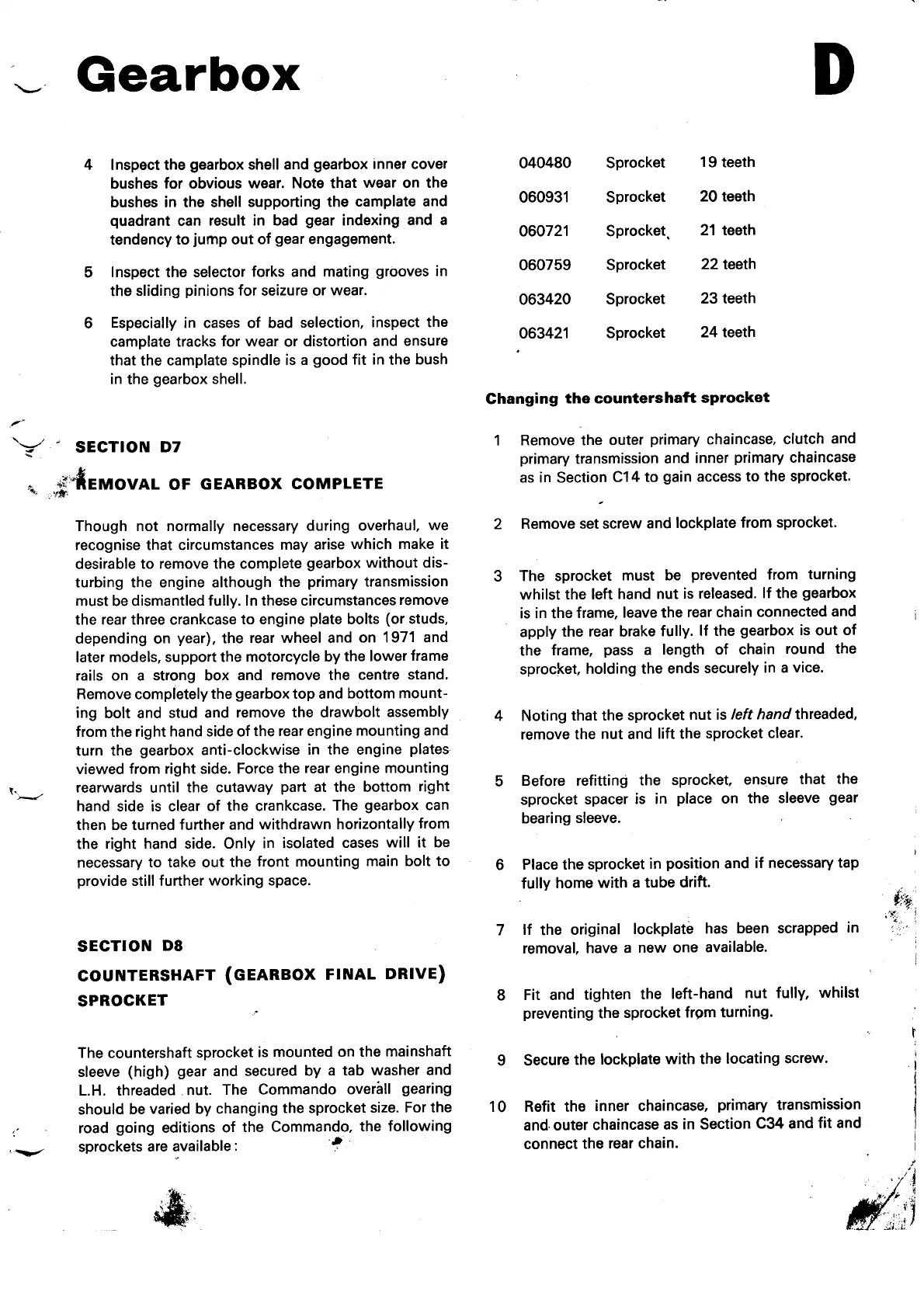 Norton Commando 850 - Removal of Gearbox Complete; Countershaft (Gearbox Final Drive) Sprocket; Changing the Countershaft Sprocket