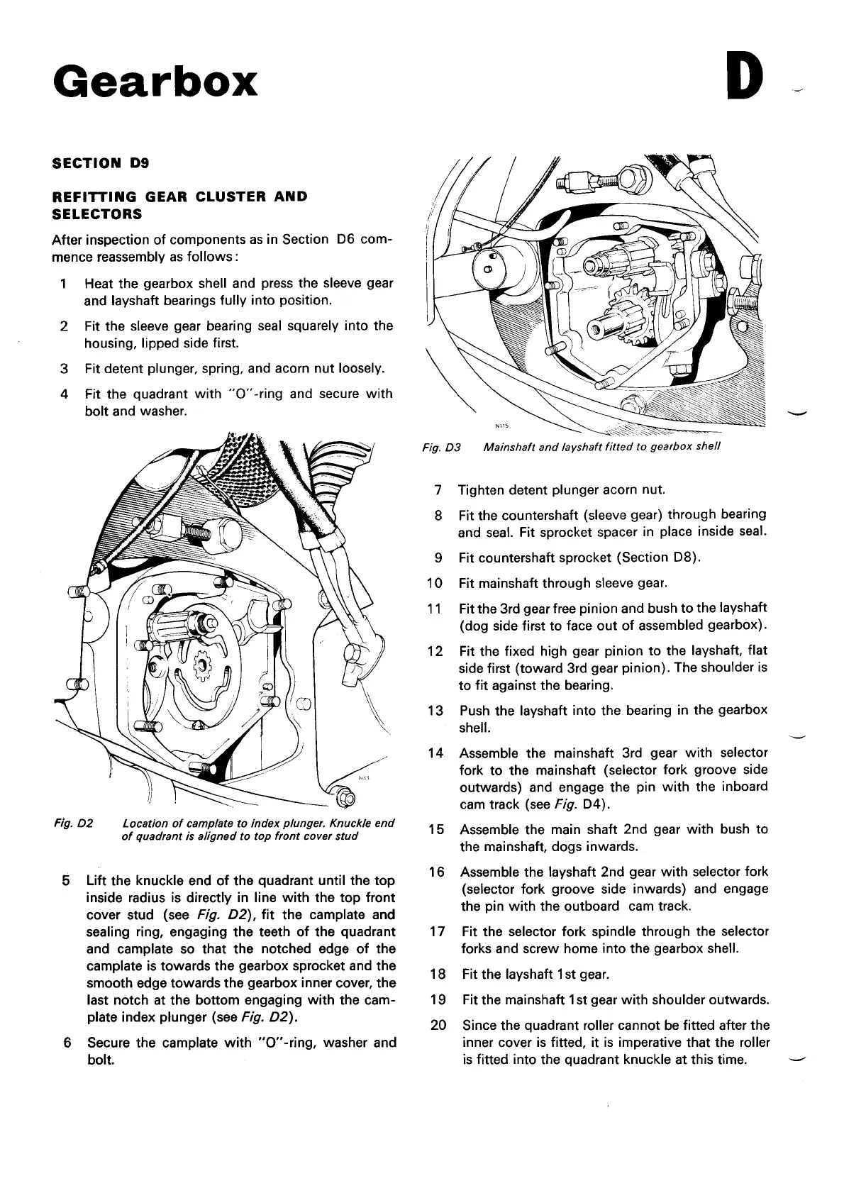 Norton Commando 850 - Refitting Gear Cluster and Selectors; Mainshaft and Layshaft Fitted to Gearbox Shell; Location of Camplate to Index Plunger