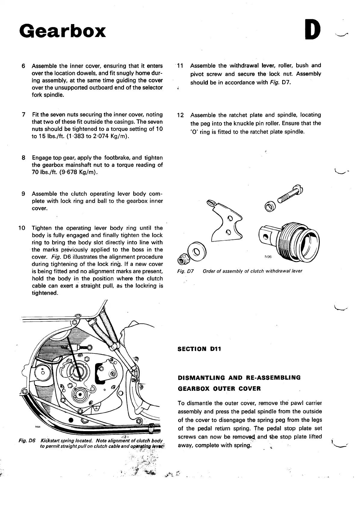 Norton Commando 850 - Dismantling and Re-Assembling Gearbox Outer Cover; Kickstart Spring Located; Order of Assembly of Clutch Withdrawal Lever