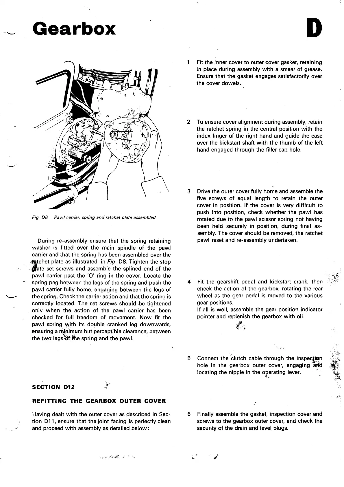 Norton Commando 850 - Refitting the Gearbox Outer Cover; Pawl Carrier, Spring and Pichet Plate Assembled