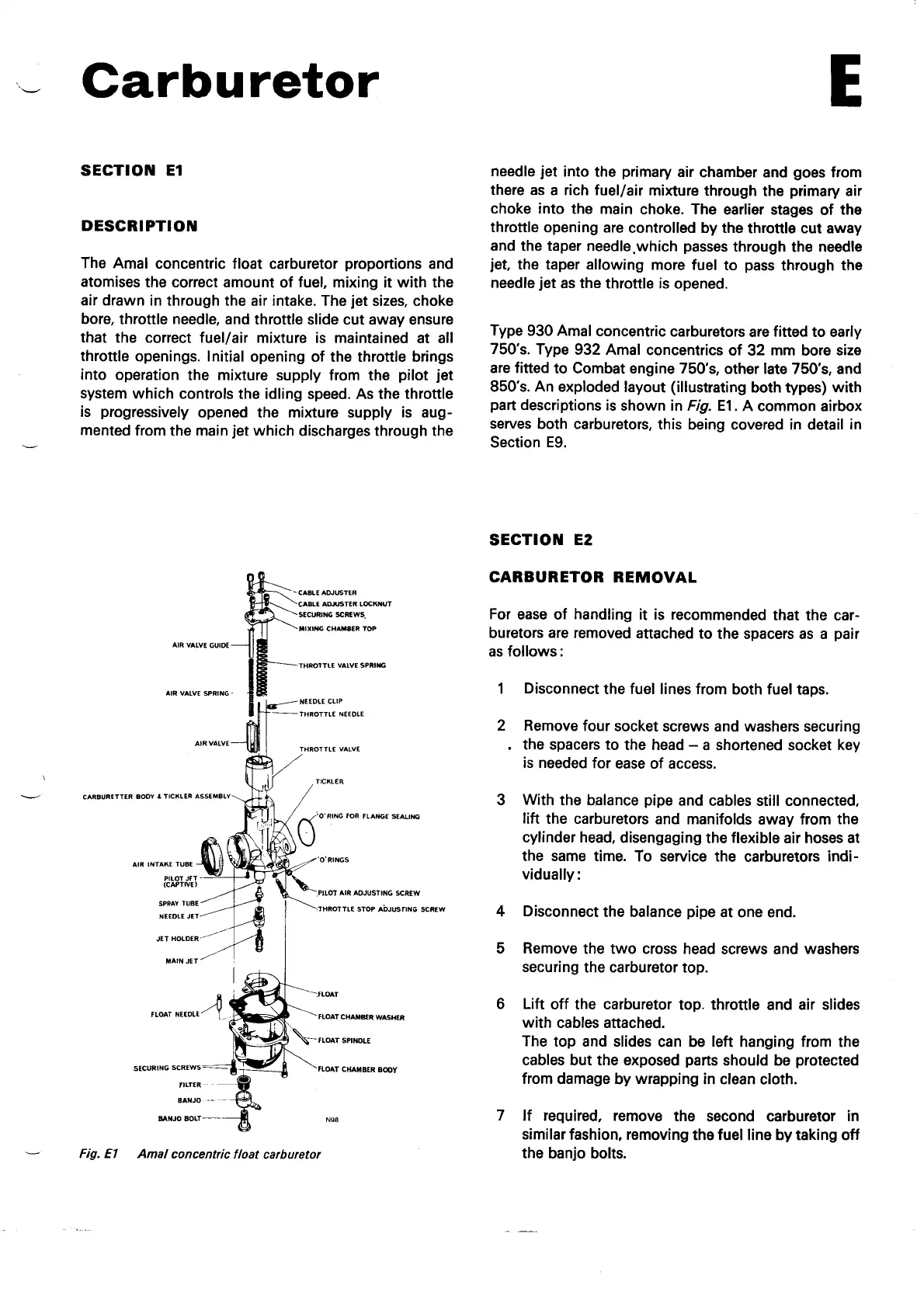 Norton Commando 850 - Carburetor Removal; Amal Concentric Float Carburetor