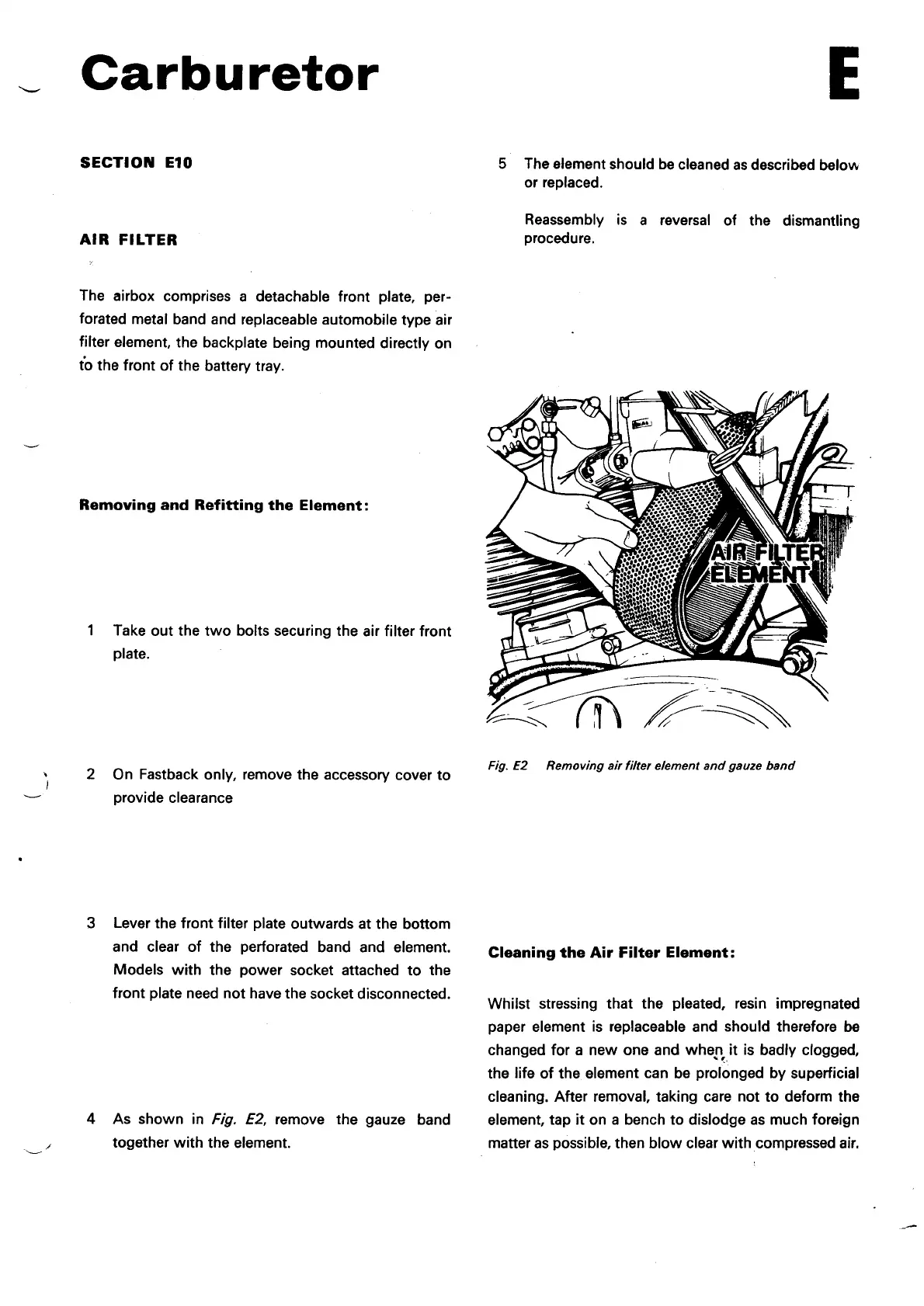 Norton Commando 850 - Air Filter; Removing and Refitting the Elements; Cleaning the Air Filter Element; Removing Air Filter and Gauze Band