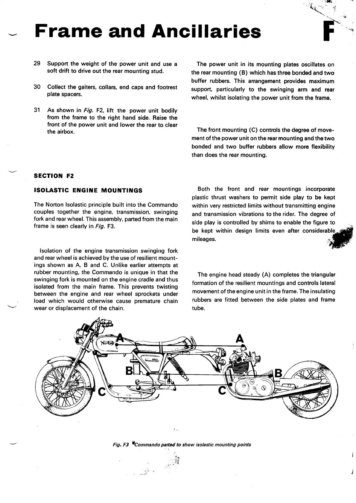 Norton Commando 850 - Isolastic Engine Mountings; Commando Parted to Show Isolastic Mounting Points