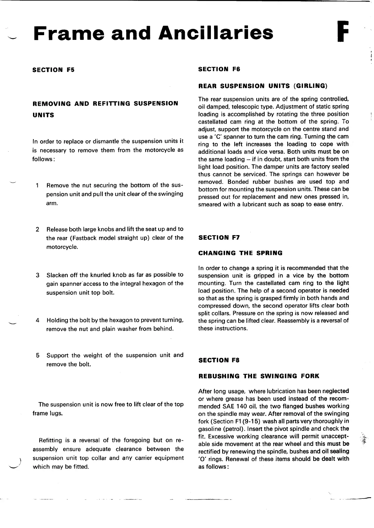 Norton Commando 850 - Removing and Refitting Suspension Units; Rear Suspension Units (Girling); Changing the Spring; Rebushing the Swinging Fork