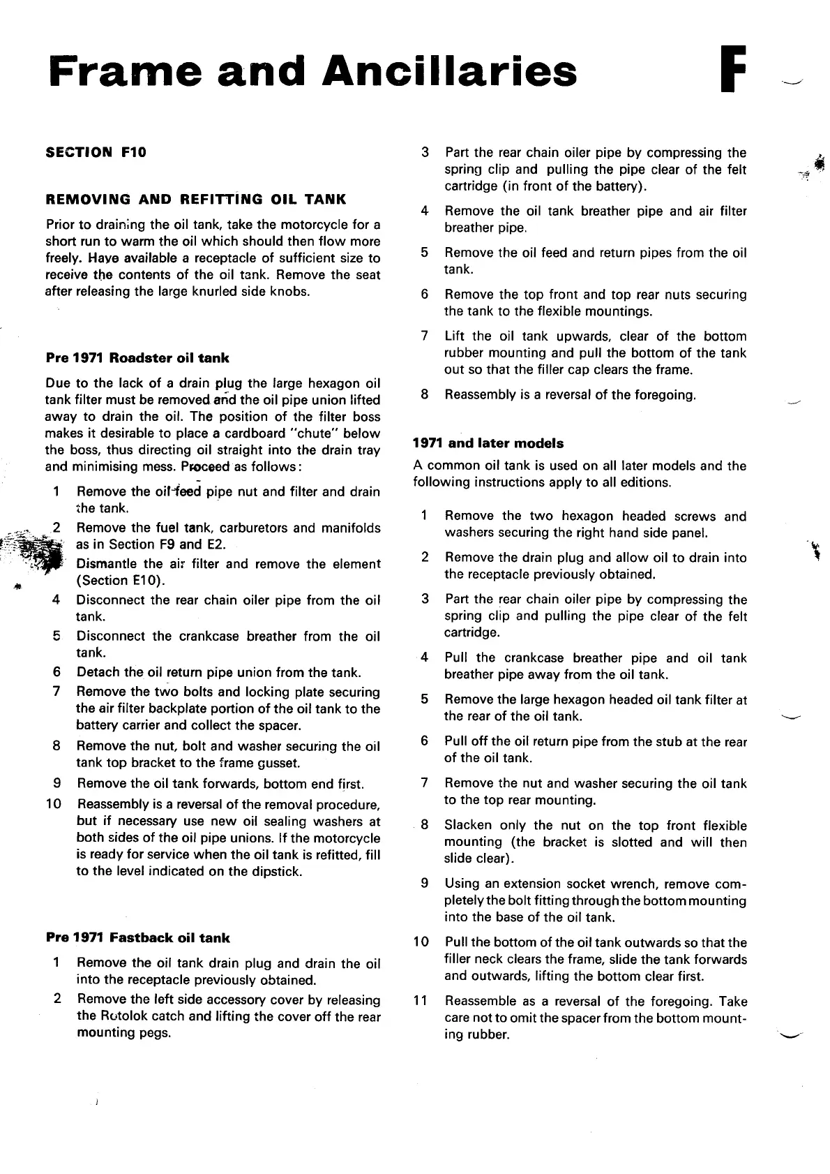 Norton Commando 850 - Removing and Refitting Oil Tank