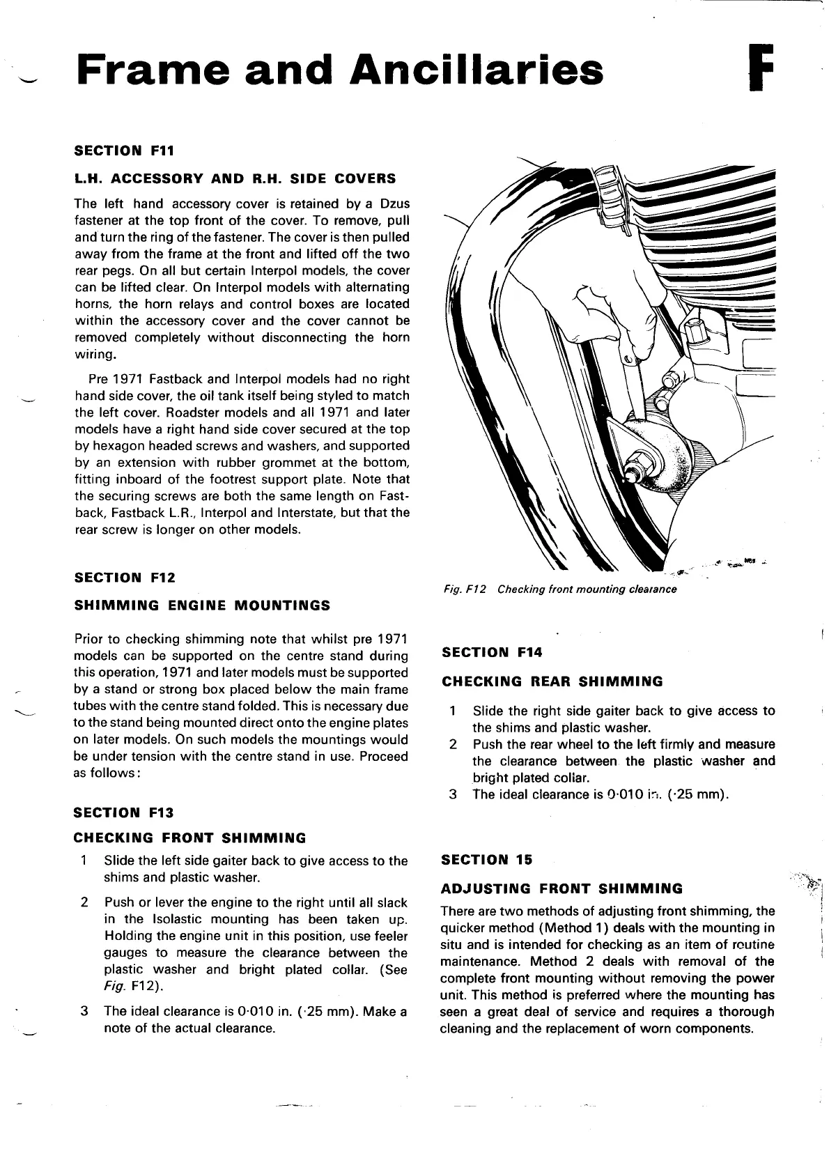 Norton Commando 850 - L.H. Accessory and R.H. Covers; Shimming Engine Mountings; Checking Rear Shimming, Front Shimming; Adjusting Front Shimming