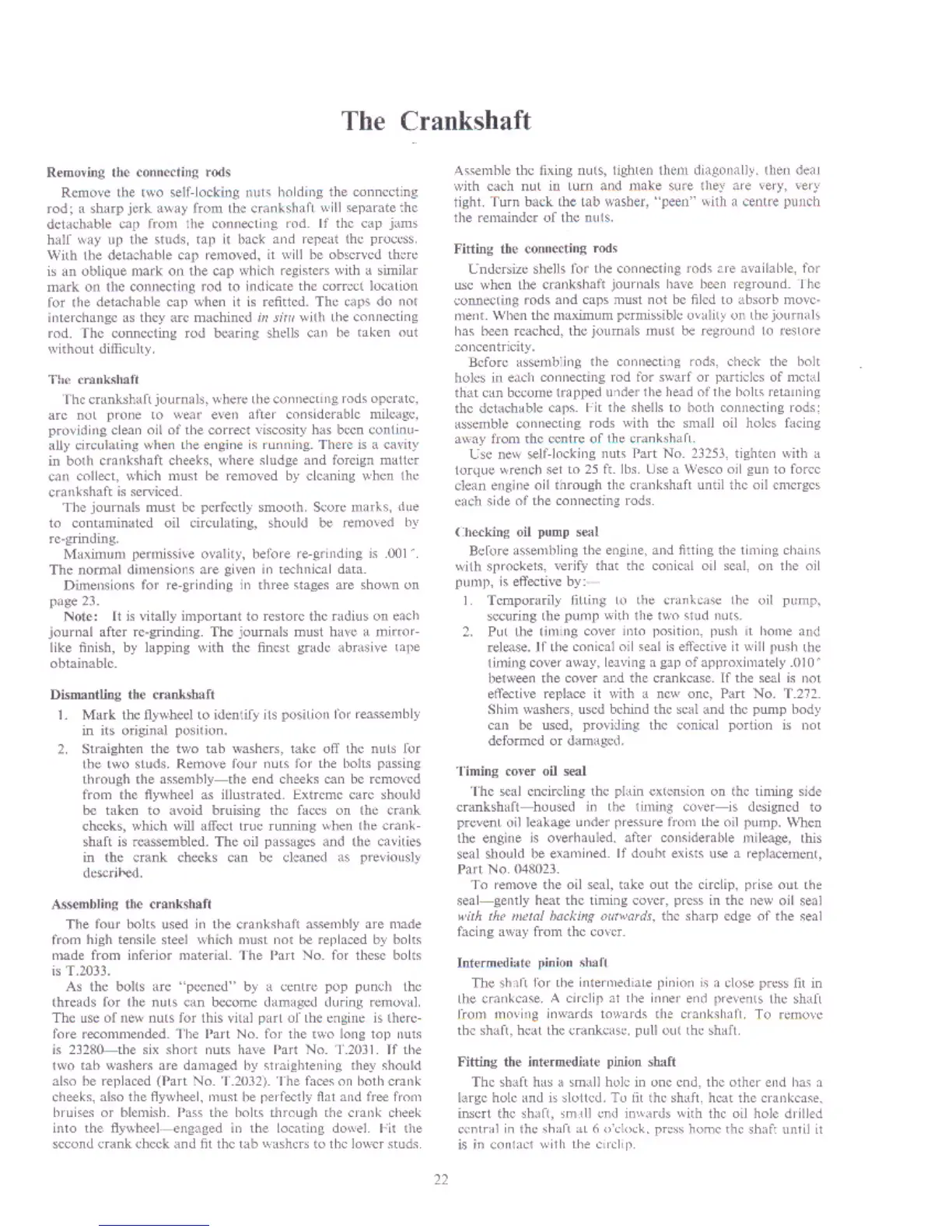 Norton Commando - The Crankshaft; Dismantling the Crankshaft; Checking Oil Pump Seal; Fitting the Intermideate Pinion Shaft