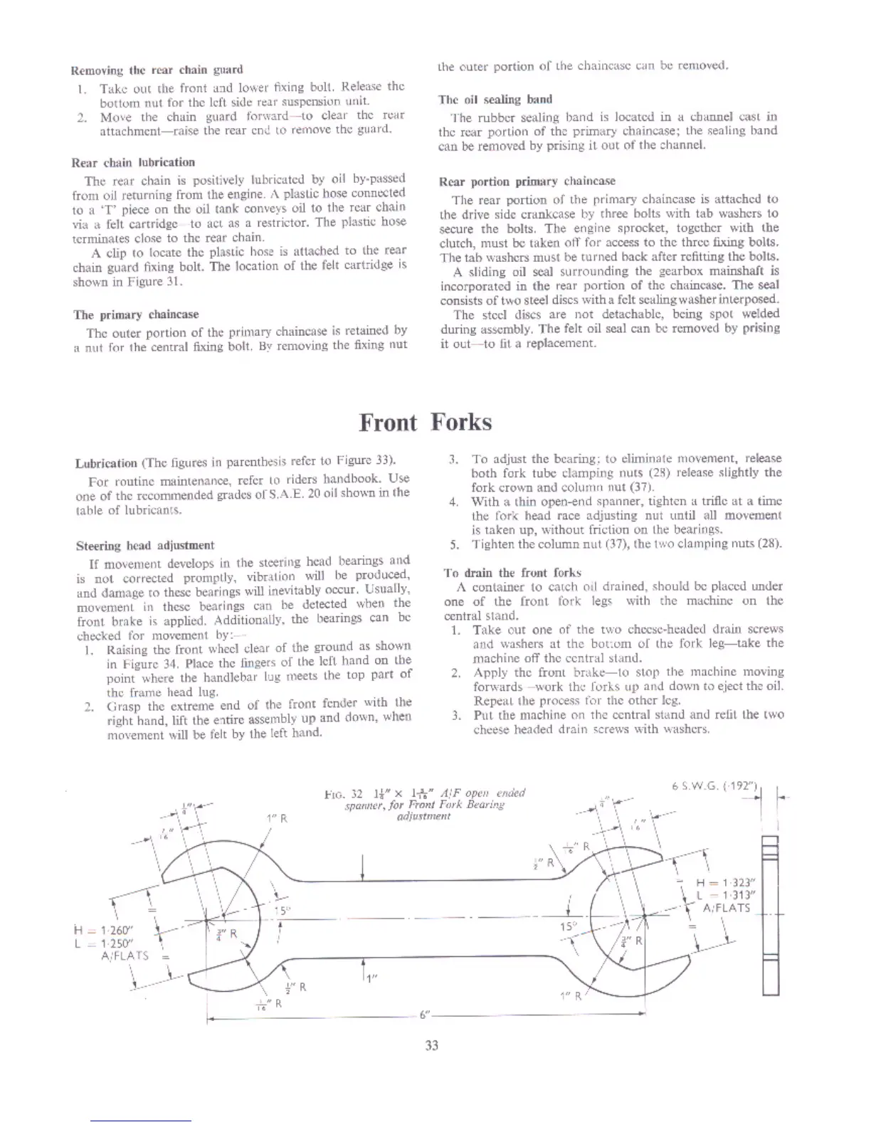 Norton Commando - Front Forks and Steering; Steering Head Adjustment; Front Fork Draining and Servicing