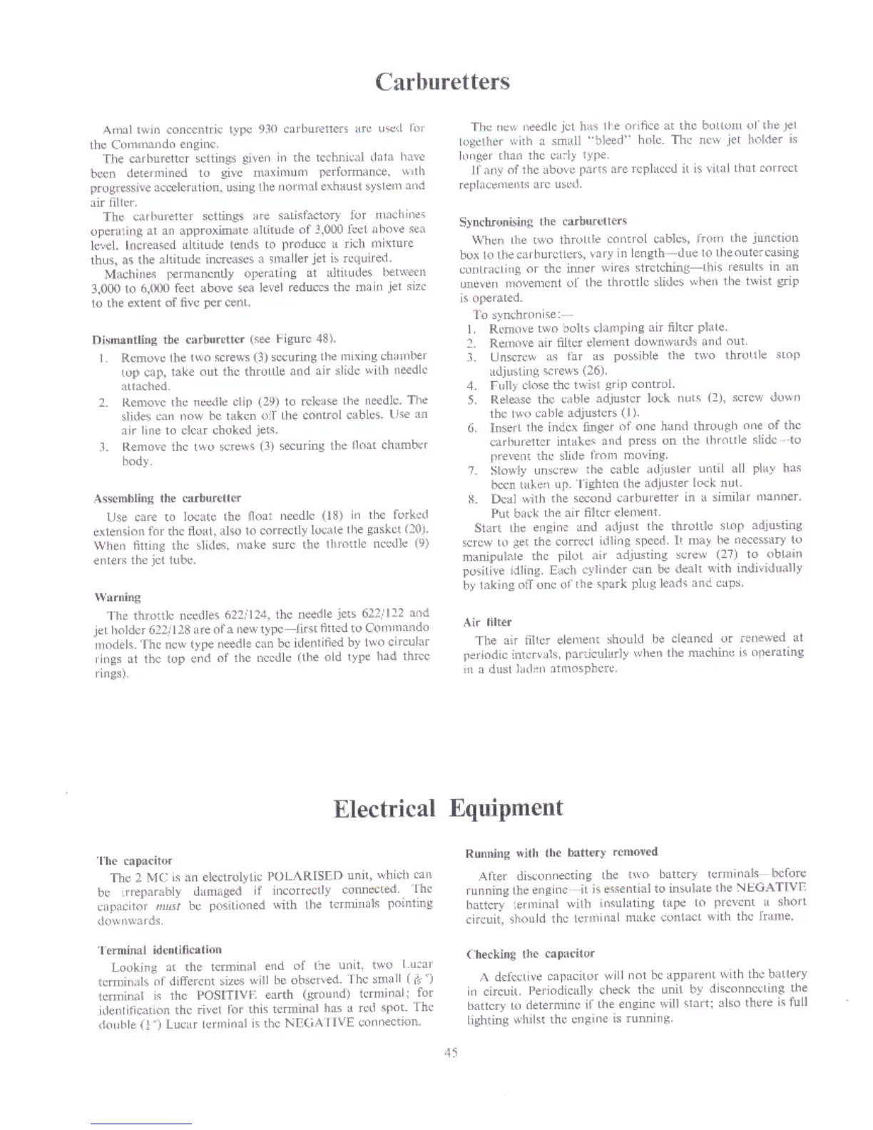 Norton Commando - Carburetter Dismantling and Assembly; Carburetter Synchronisation; Air Filter Maintenance