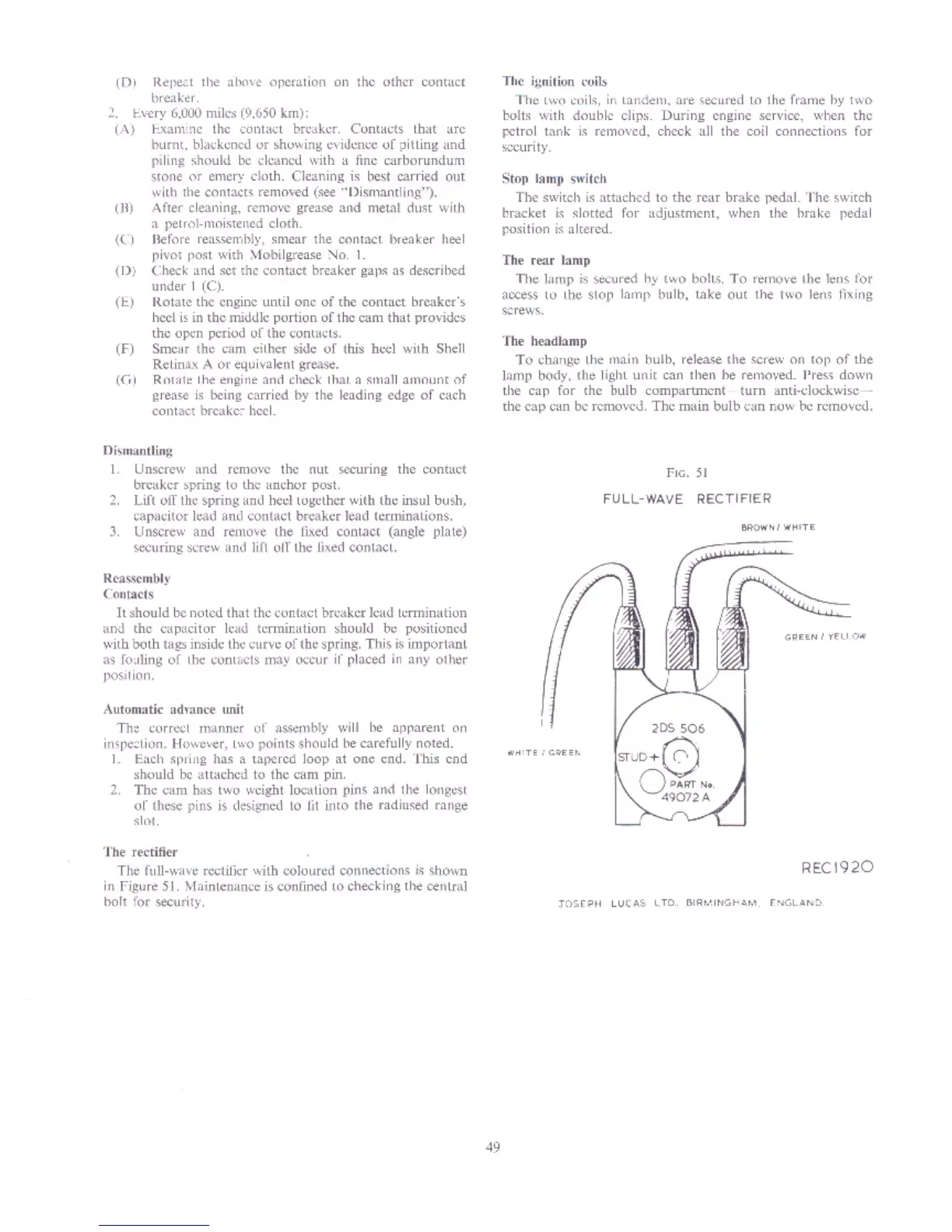 Norton Commando - Automatic Advance Unit and Rectifier; Lighting and Lamp Maintenance