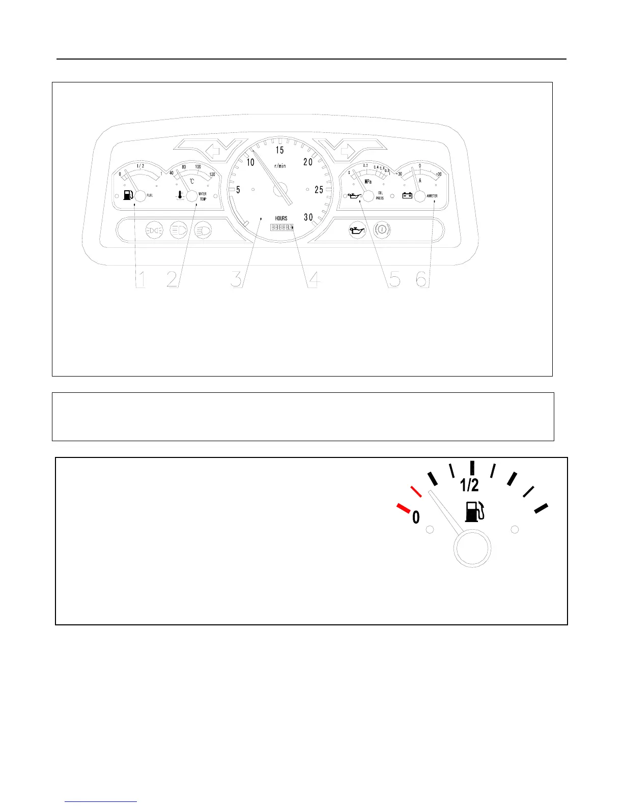 1. Fuel Gauge 2. Water Temperature Gauge 3. Tachometer 4. Hour Meter 5. Oil Pressure Gauge